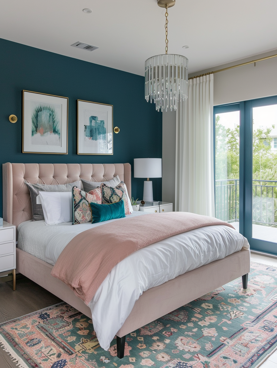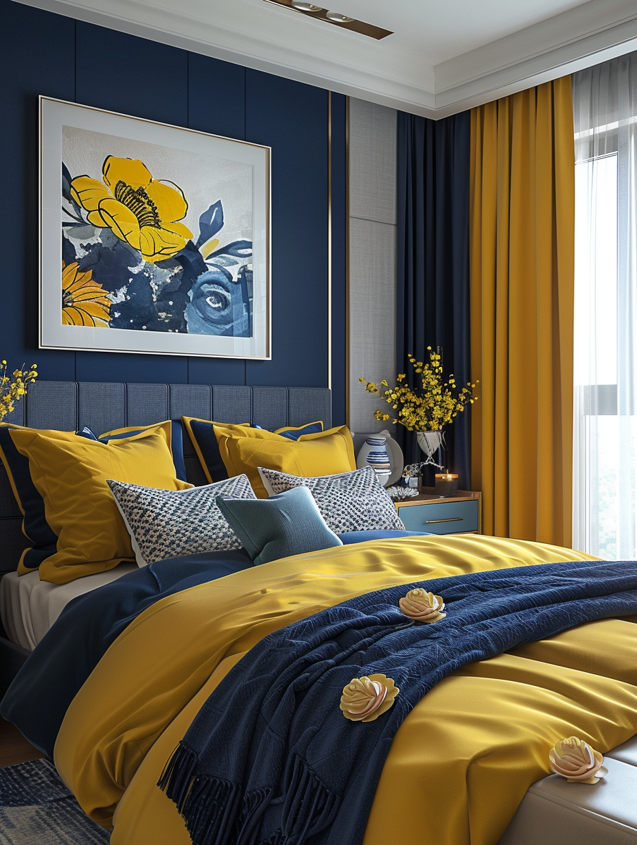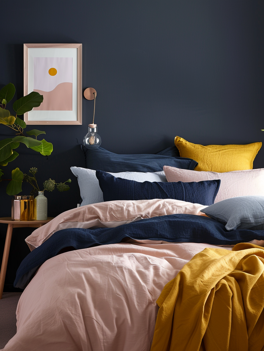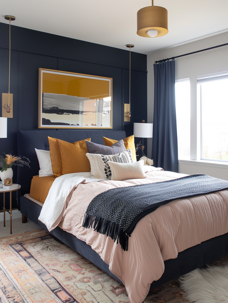 A unified and orderly appearance becomes through the intersection of two dominant colors in your bedroom. The harmonization of colors such as navy and blush, or gray and mustard, will create coherence of design. Apply these colors to both the walls and bedding and add these colors to the accessories and contrast with neutral furniture. This combination is appropriate for people who desire a room with the most fashionable and harmonious interior scheme.