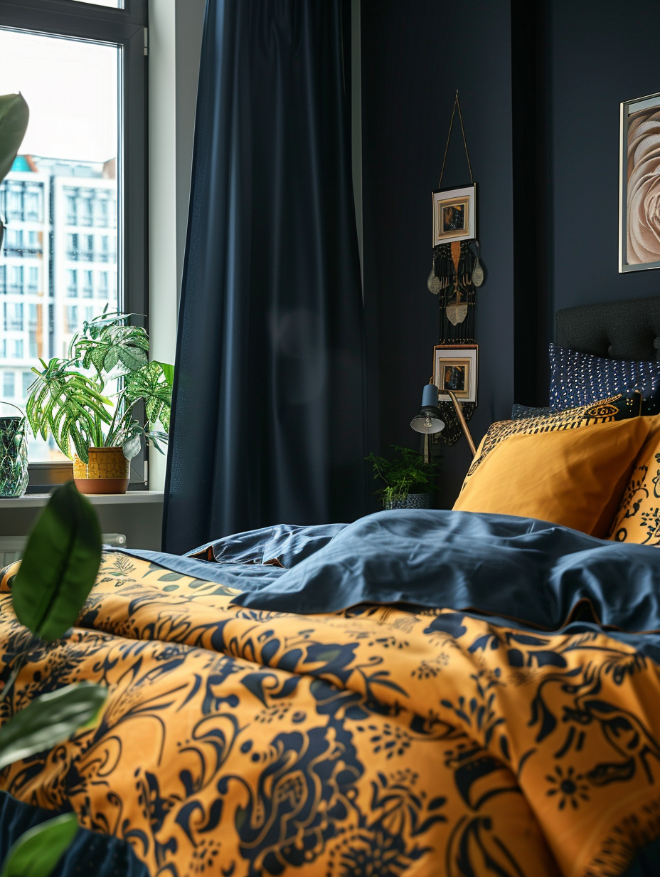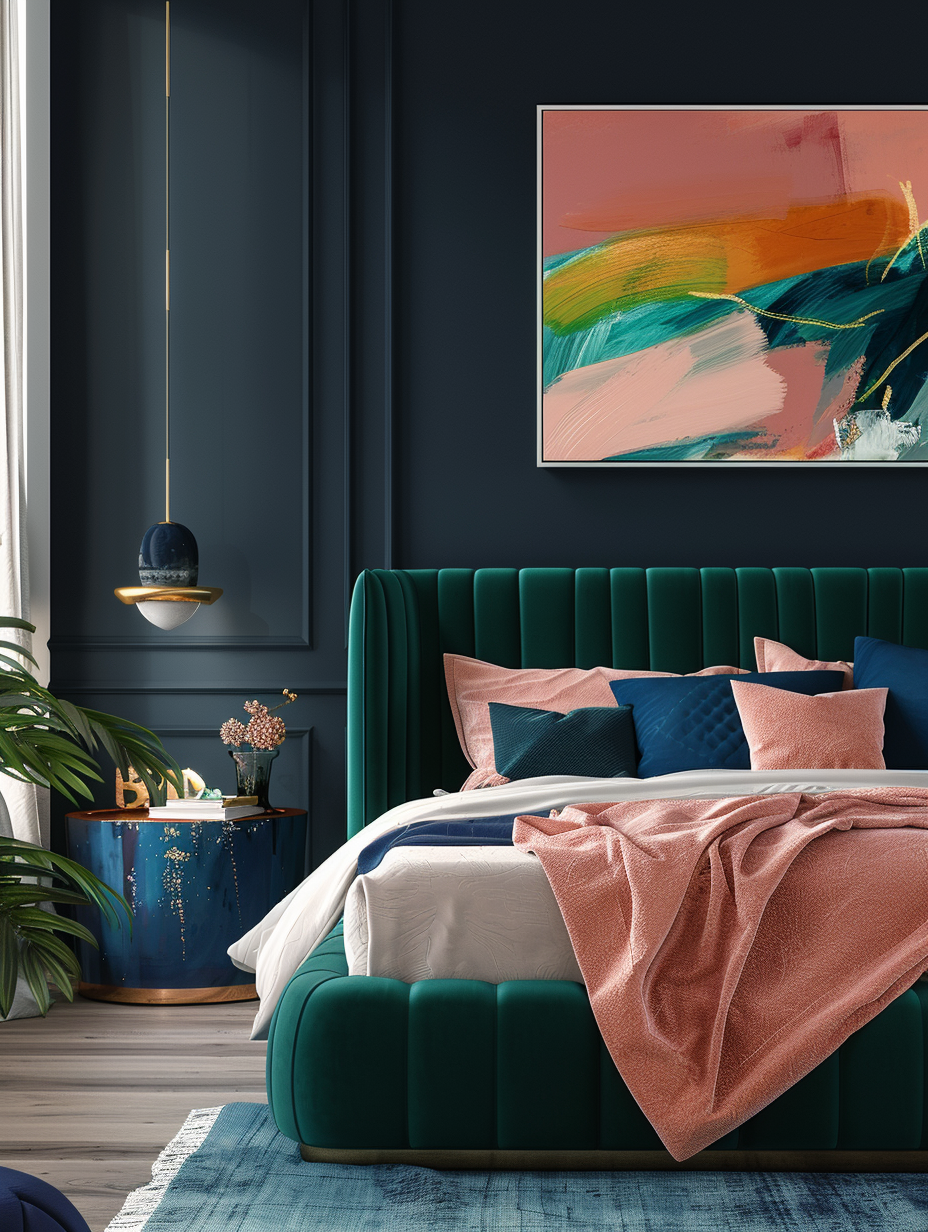 Playing with surprising combinations of colors is a way to rejuvenate and make your bedroom look creative and lively. Combine different colors like navy and mustard, teal and coral, which are not usually connected to each other, to make a visually stunning and lively area. Employ these shades in your beddings, curtains, and decorate items to convey a strong message. This method is perfect for people who like an artistic and individualized space.