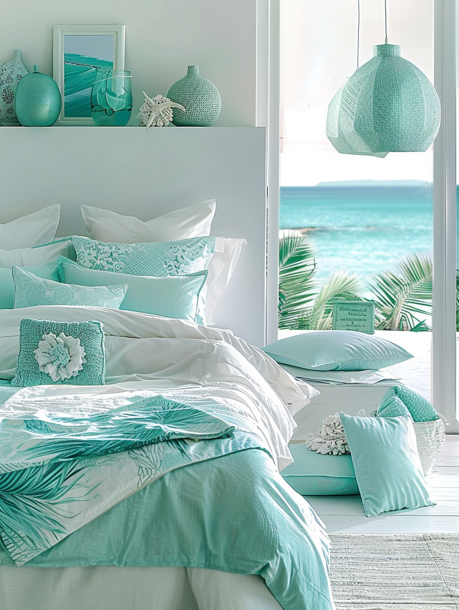 Aqua and teal are soothing and serene provides that can give your bedroom a peaceful retreat for you. Try these on your walls, bedding, and accessories, to get a look that hangs together. Harmonize the combination with white or light wood furniture to add to the airiness and clarity of the space. This color combination is an ideal one for a room makeover in a beach or coastal theme.