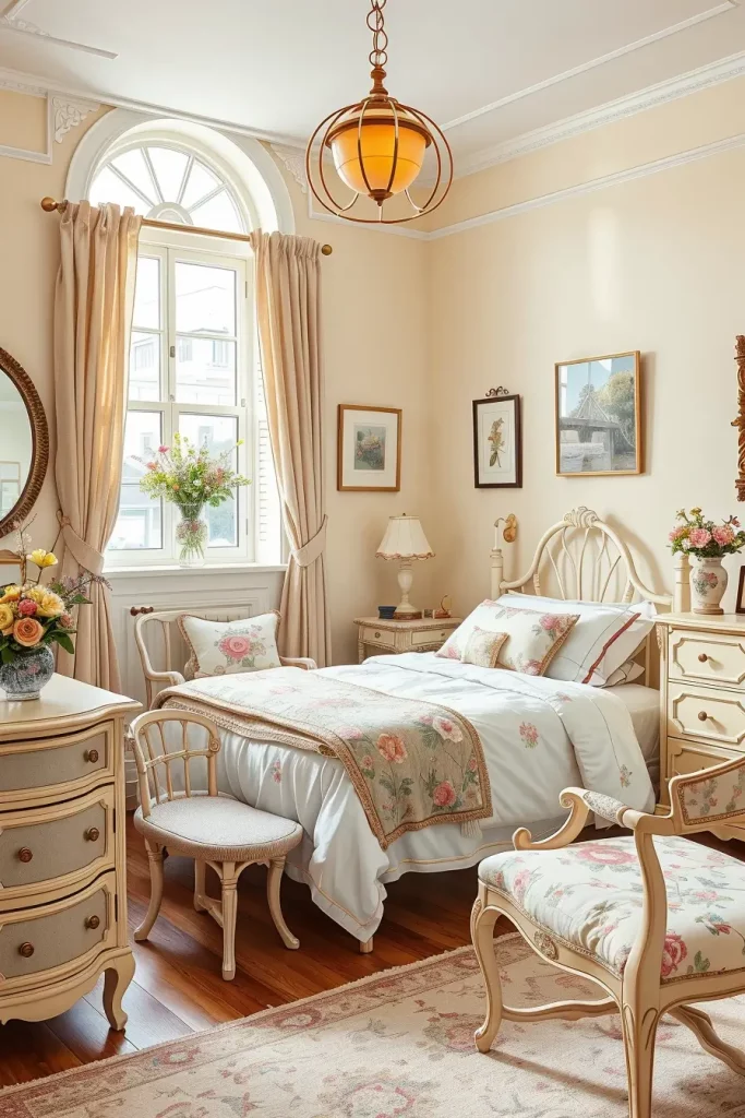 To further enrich the space, I would include dried floral arrangements or soft drapery to deepen the room’s romantic appeal.