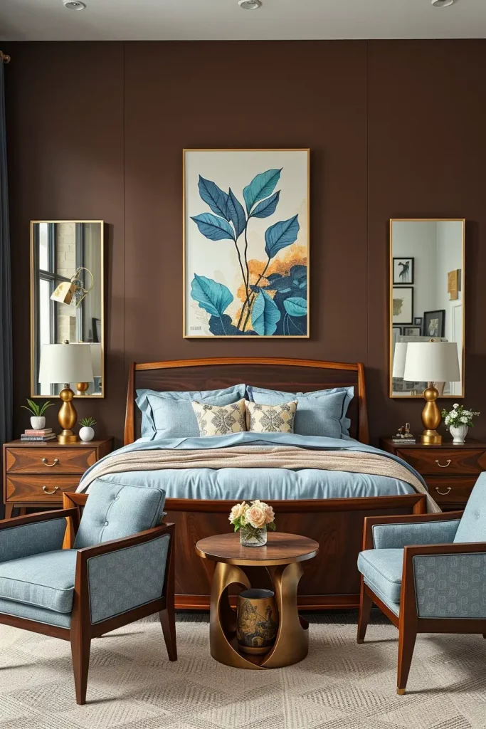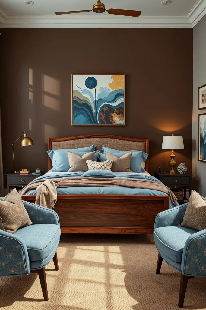 Want a contrast and warmth in 2025? Then you will need to consider the combination of chocolate brown and dusty blue. I believe this combination is very grounding The chocolate shade adds a feeling of being cocooned, and the dusty blue gives the palette a feeling of calm. The combination of the two provides a contemporary, rich look that is ideal in master suites.