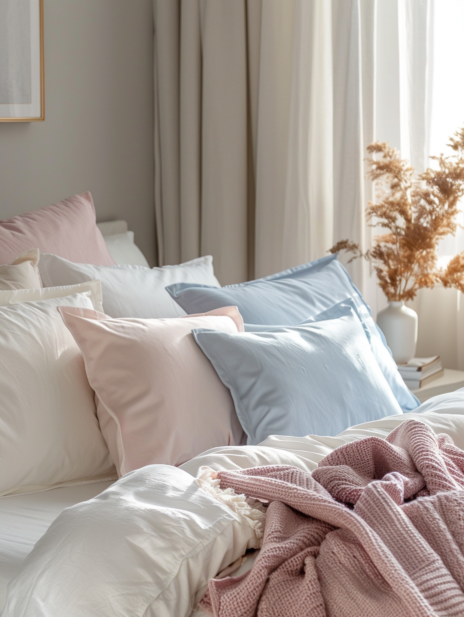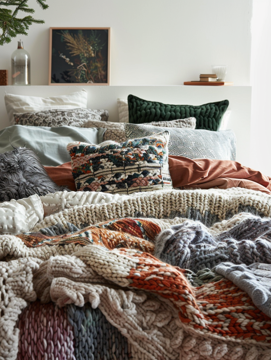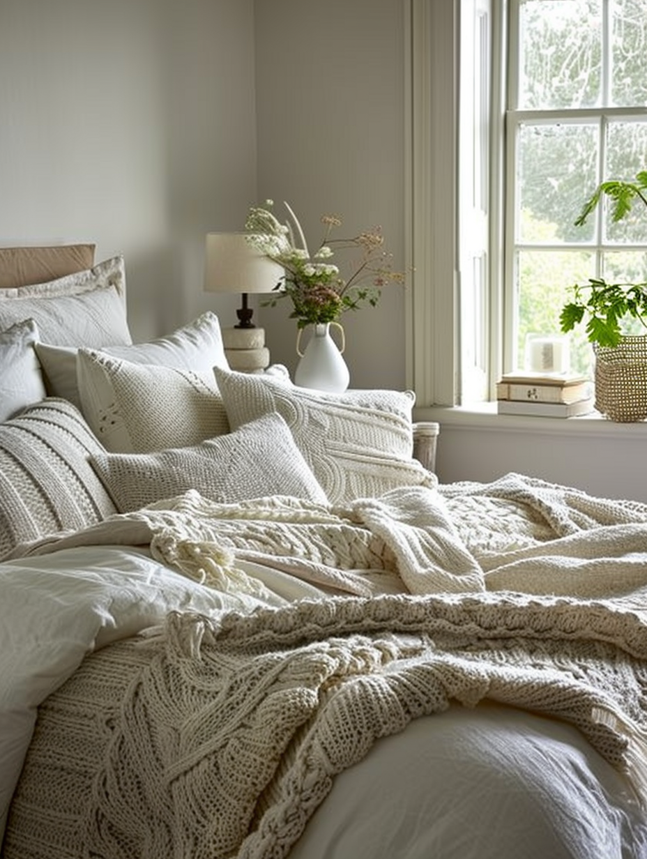 A combination of pillows and BIG throw blankets easily and elegantly provides warmth and texture to any bedroom decor. Mixing and matching the right textures together and experimenting with different patterns can be a remarkable way to stand out in creating both a picturesque and snug environment. Pick the textiles and the hues that harmonize your bedding and motifs.