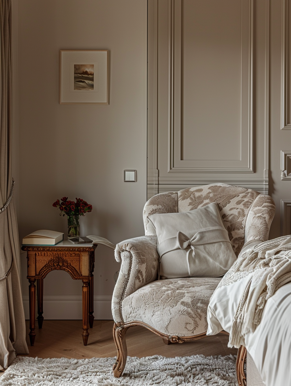 A seating area is an added luxury and an excellent corner to unwind in a bedroom. The seating area might include a plush armchair, a small sofa, or a window bench and can improve the functionality and style of the bedroom. Getting furniture that matches your decoration style is a good idea as well as having a small table near you, which makes reaching for things more convenient.