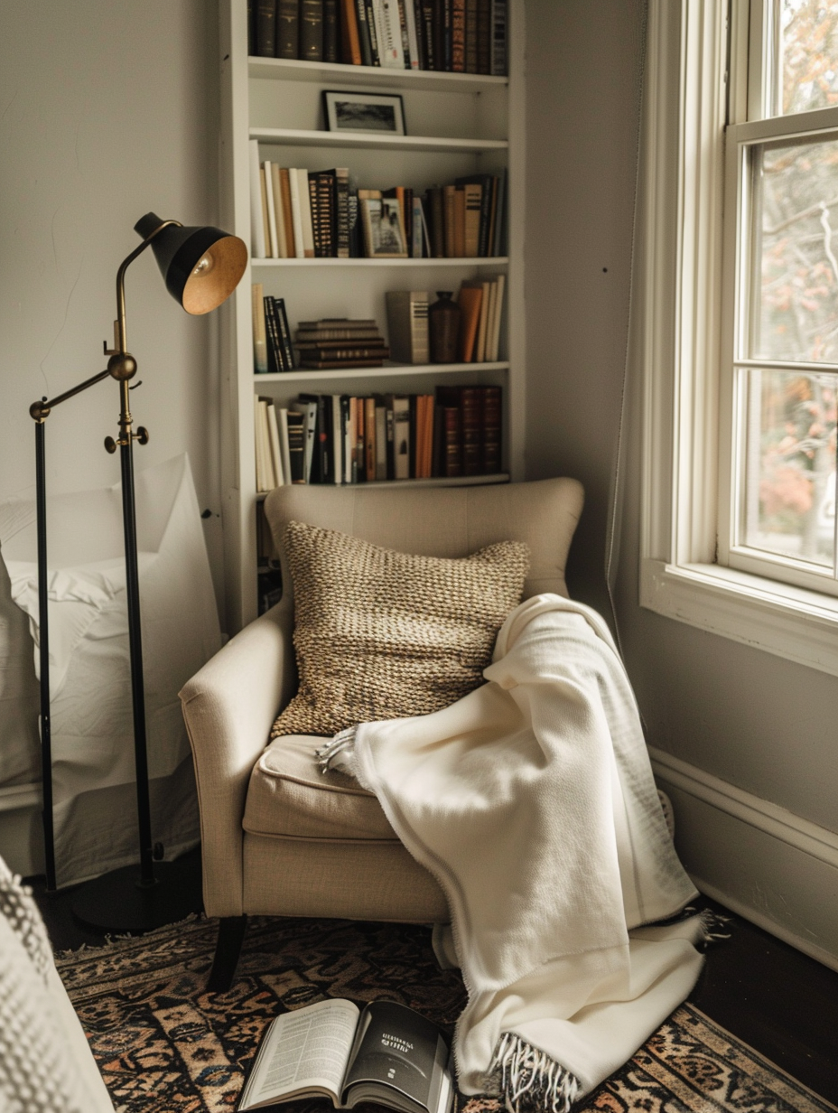 A reading nook is the best thing for book lovers and is capable of being simply inserted in any bedroom. Select a silent part of the room and put in a cozy chair, a nice lamp, and a small bookshelf. Light pillows and a throw blanket can add even more attraction, the spot then becoming the perfect place to relax and read.