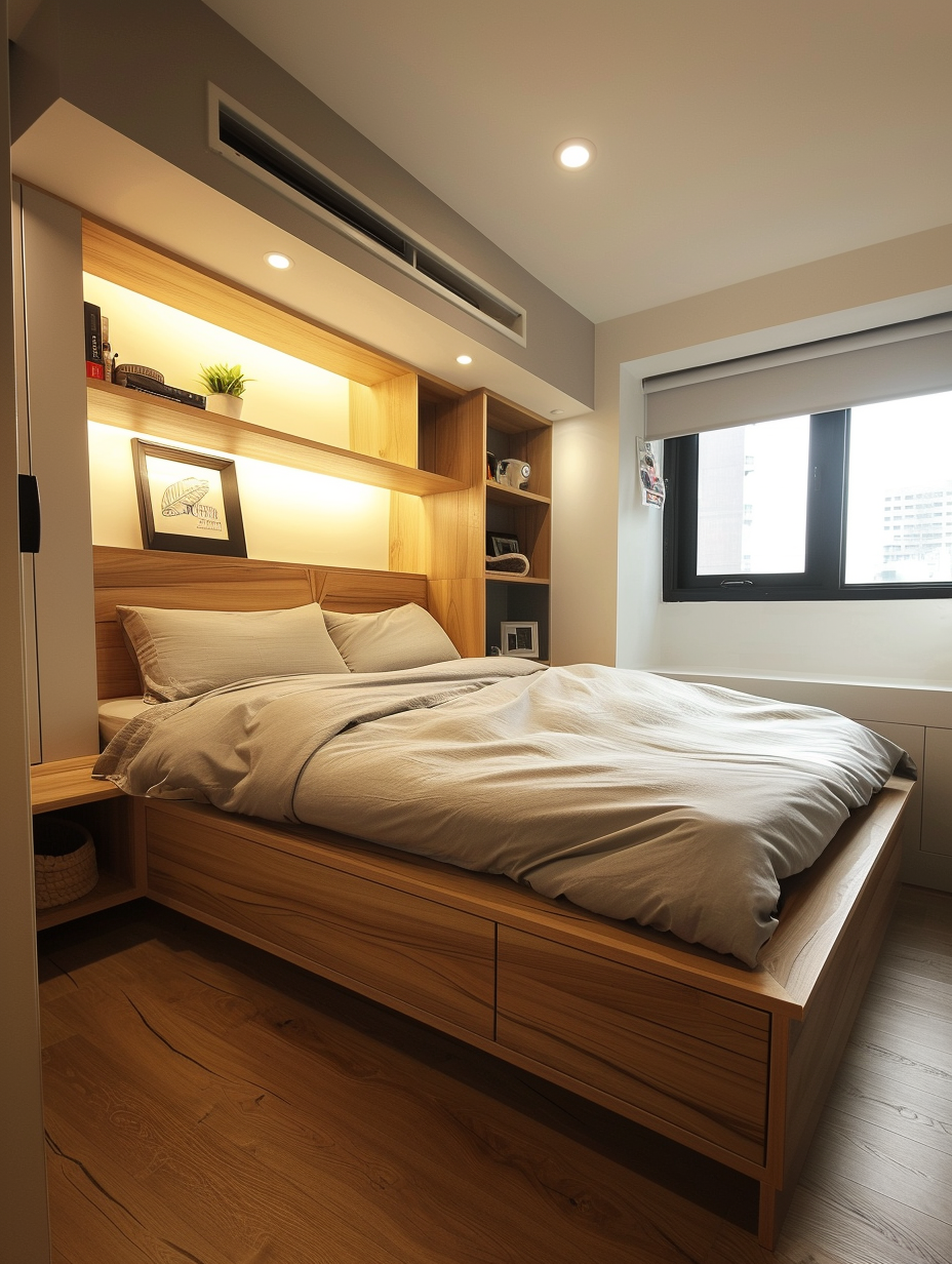 Keeping the bedroom in order and clutter-free is the most important aspect to have shelves and storage solutions installed. Decorative objects can be placed on floating shelves, while you can have built-in shelves for proper storage space. Using multifunctional pieces of furniture such as storage beds and ottomans can be the best way to spruce up storage possibilities without leaving out the style features.