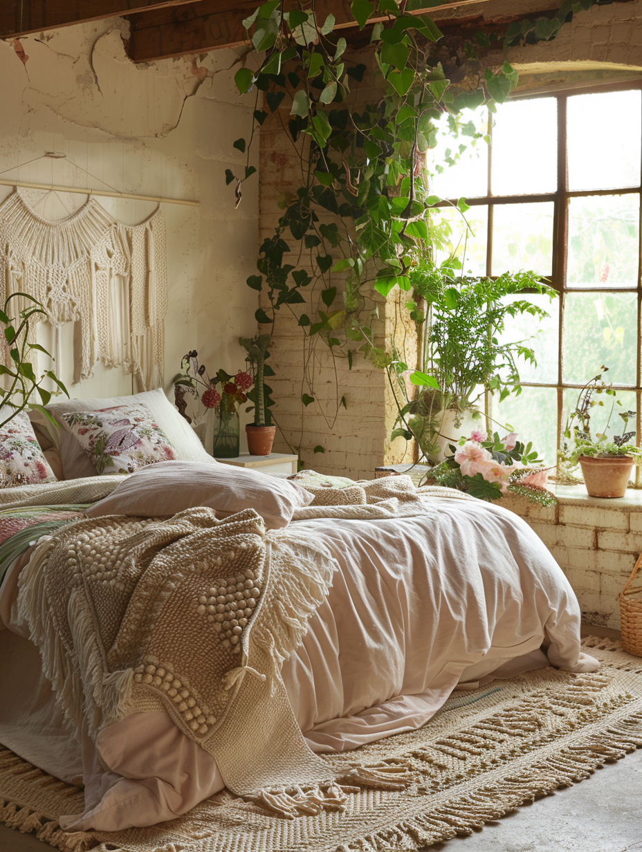 Bohemian bedroom decor involves the elements of creativity, non-coherence, and an exciting combination of colors. Weave a blend intricate textiles such as rugs, throws, and cushions to mold a homely and relaxing atmosphere. Get to know the eclectic culture by adding vintage furniture, macramé wall hangings, and bring some greenery to fulfill the typical Bohemian appearance.