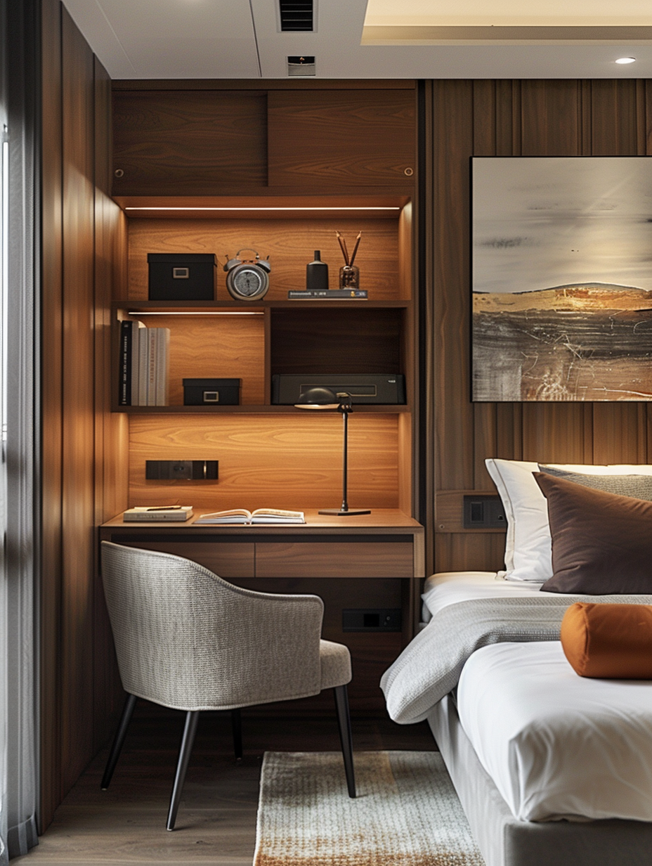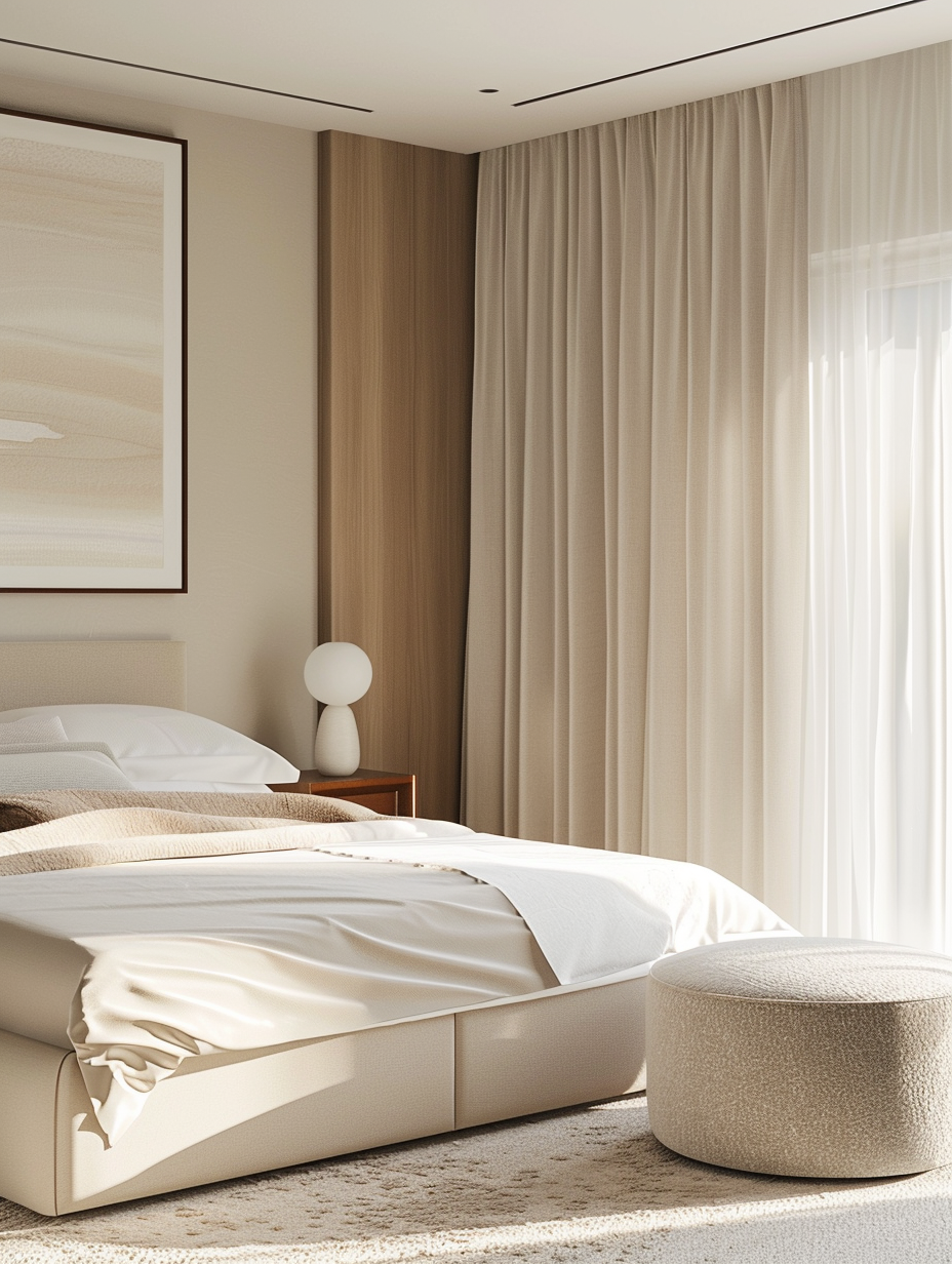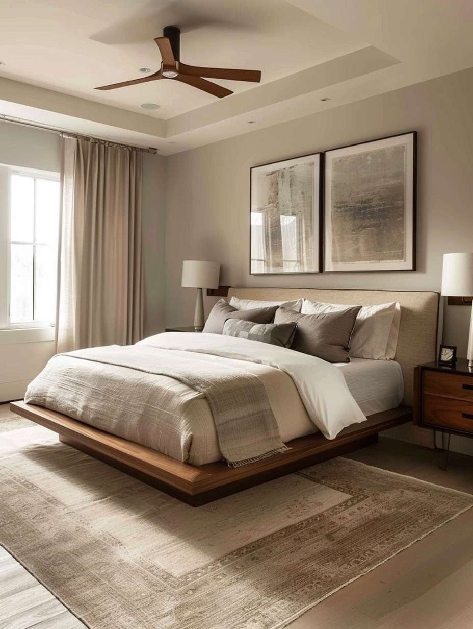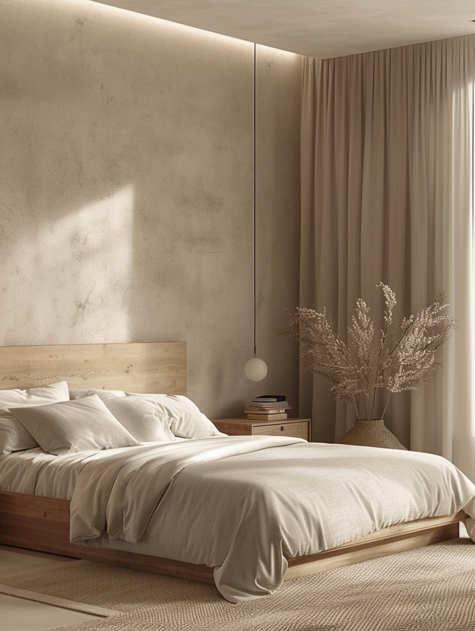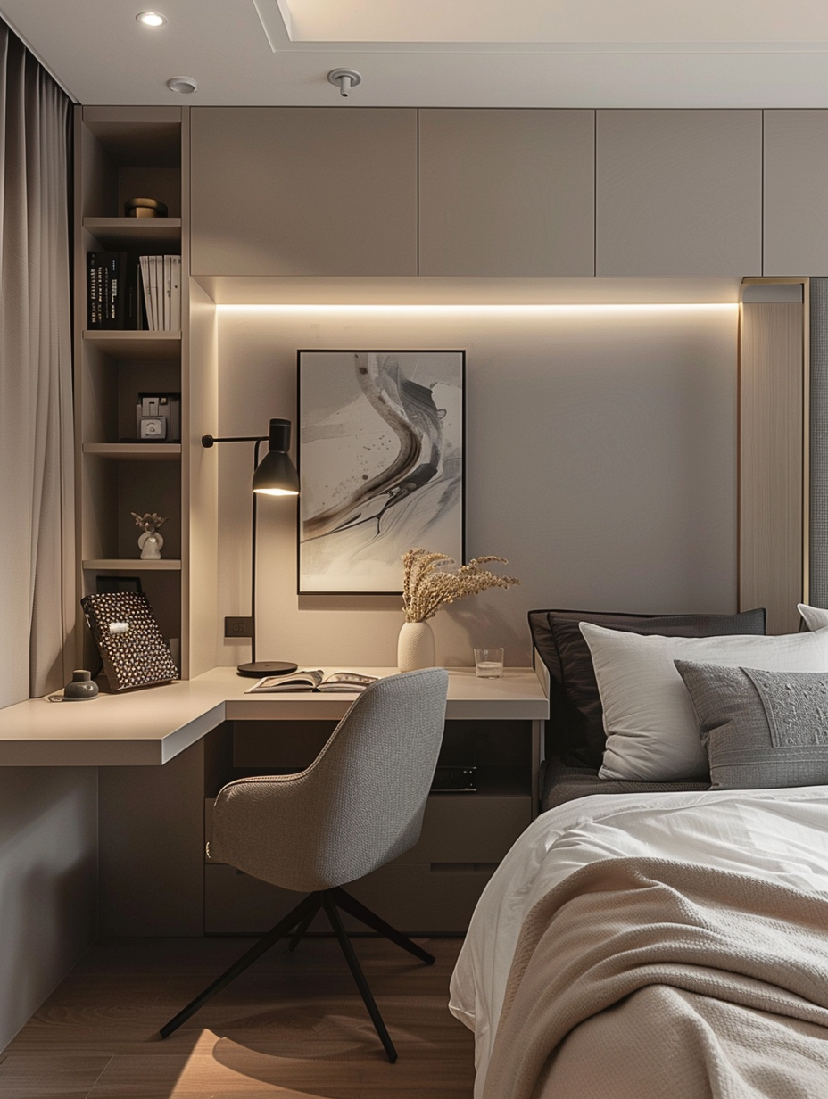 A simplified bedroom design that focuses on simplicity and functionality is an approach to space making that is peaceful and uncluttered. Key elements are simple lines, neutral color palettes, and no-nonsense decor. The items are usually clean and understated, giving them the essential storage and space-maintained look instead of making them the focus. Persons who prefer the minimalist way of life and a quiet bedroom in the night hours will find this a perfect style for them.
