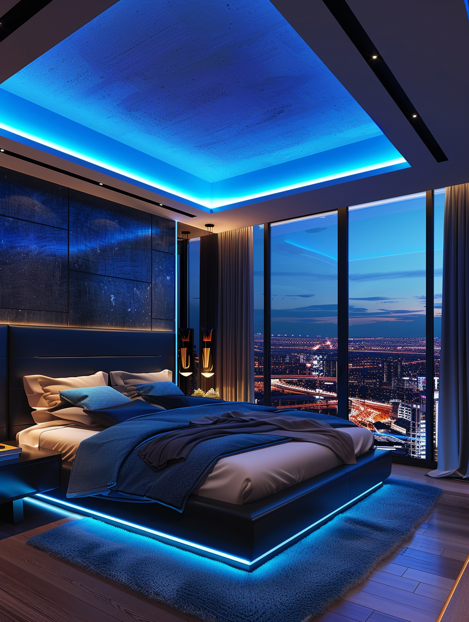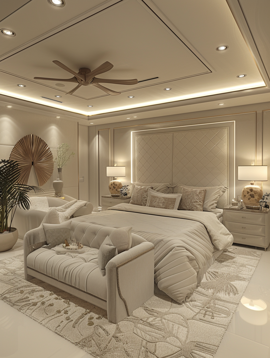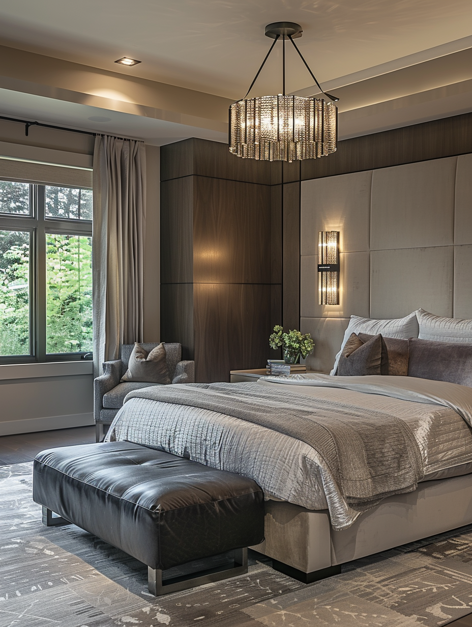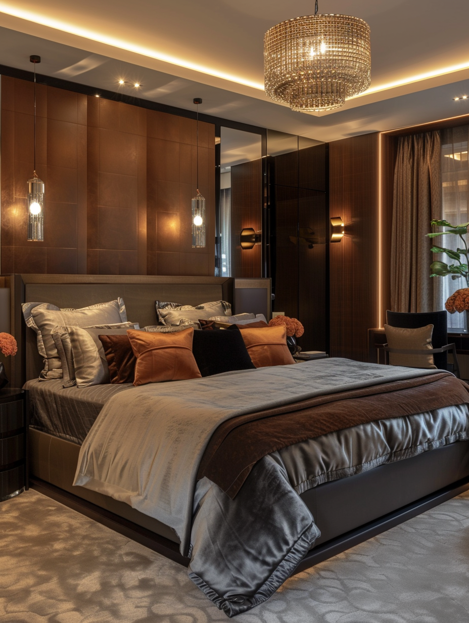 A bedroom can be a much better place because of the light that you set up in it, which can make the right mood and improve efficiency. The best luxury bedrooms bring together all sorts of lighting (effect on it) like general, task, and decorative lights. Pendant lights, sconces, chandeliers, and smart lighting systems make the decor more stylish and give you the needed space to correct the mood according to your mood.