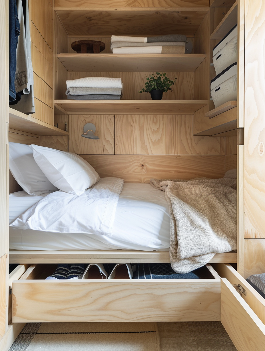 Smart storage should be applied to all small bedrooms to create an organized and clutter-free environment. Built-in closets, under-bed storage, and multi-functional furniture are some of the things that you can use instead of integrated storage to maximize space without stylish style. Consider minimal designs when you want to have a clean and neat look. In addition, see to it that each and every item in a room has its place.
