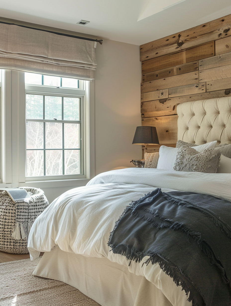 To make the bedroom appear more original and deep, one promising way is building an accent wall. Brosia ting in modern blushes, textured wallpapers, or items such as the use of wood, brick, or tile are all among the best ones. An accent wall can be designed to emphasize room architectural features or be a wall behind the bed.