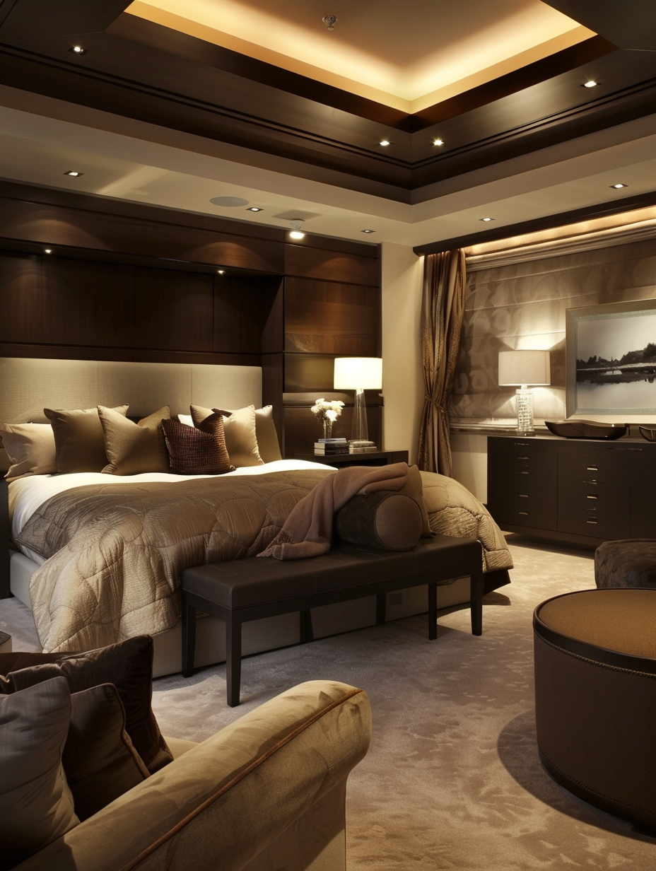 The master bedroom is where your luxurious retreat should be. Pick up a modern luxury style with soft linen, beautiful furniture, and projects that have been made flawless. A cool color plan, a sitting room, and indirect light make enjoyment stronger. Artworks, photos, and accessories that show authentic charm are the modifiers. So, personalization of the chambers is an additional filler trip you might go for.