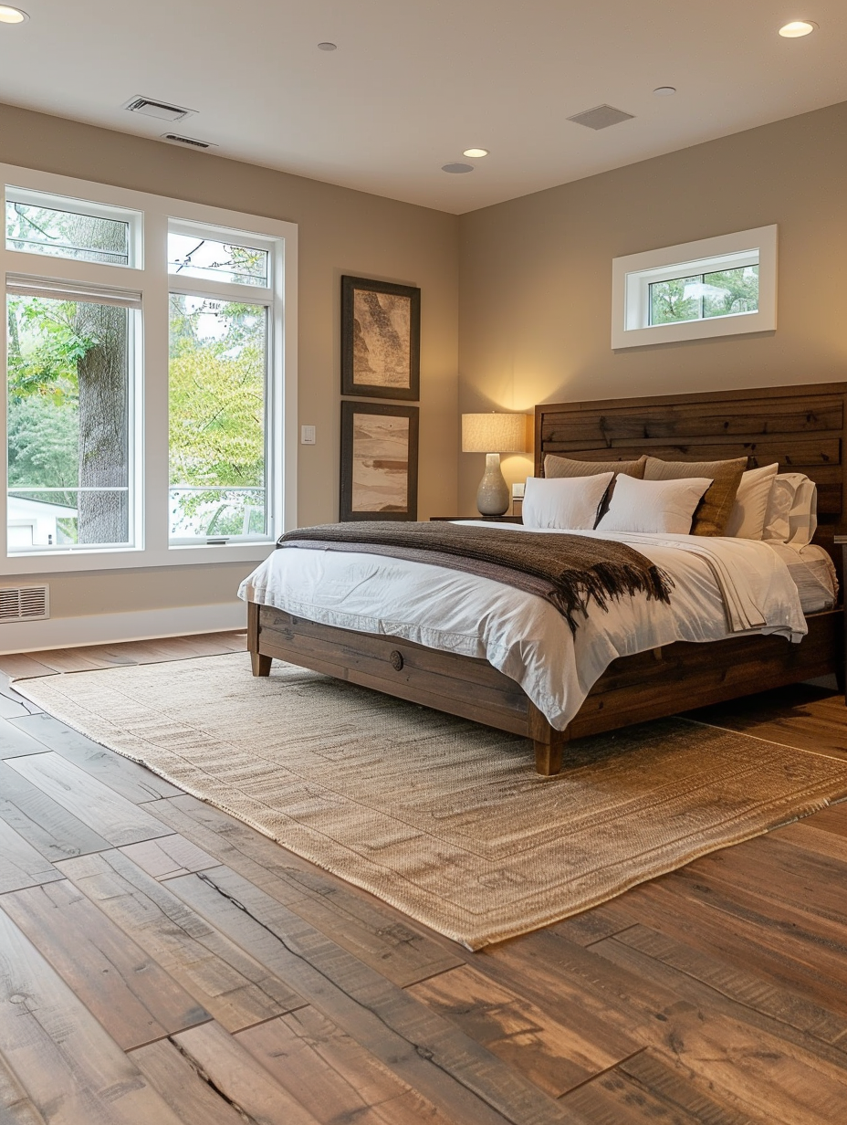 Using the correct flooring can make a big difference on how a bedroom seems and feels. Hardwood floorings are an everlasting choice that can add class and warmth to the room. The use of the carpeting gives comfort as well as sound insulation, which makes it a perfect choice for bedrooms. However, for a different look, let’s explore different options such as.LVT, wood, or eco-friendly materials like bamboo.