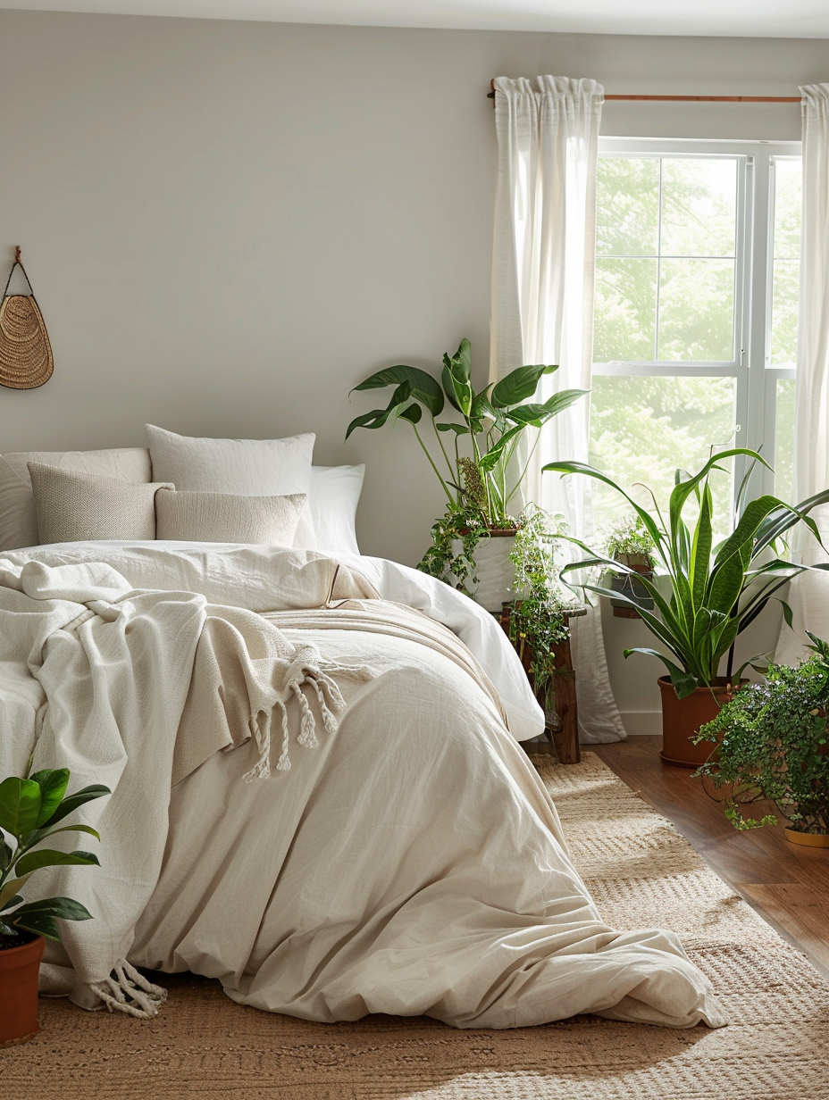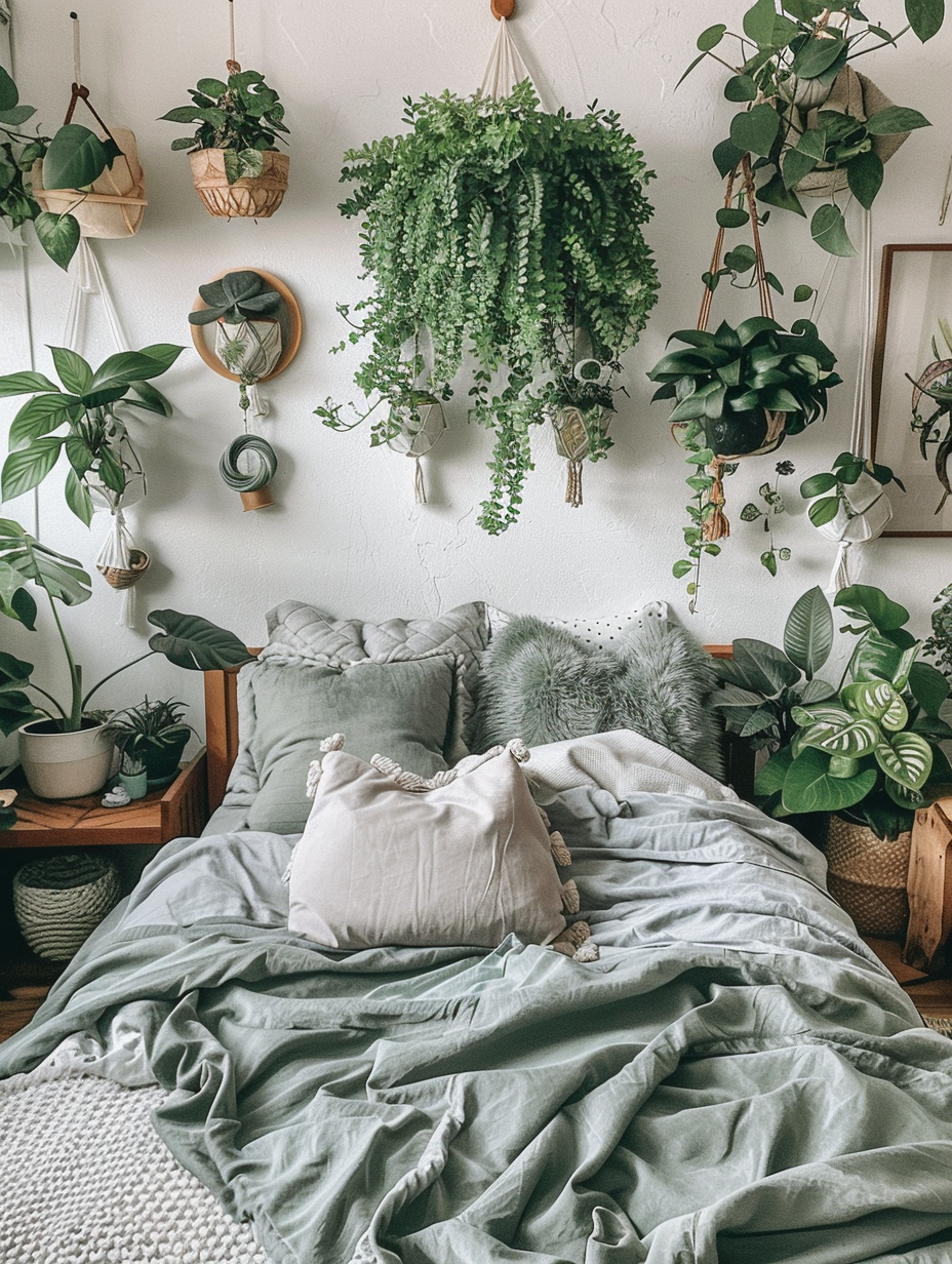 The design of plants and greenery in your bedroom is a way to increase its purity and air circulation. Selecting such plants as the most convenient species like succulents, snake plants, and peace lilies, what grow well indoors will be most beneficial. To make the décor of the space more attractive give it an energetic twist by placing several potted plants, hanging planters, and shabbiest of timber things there.