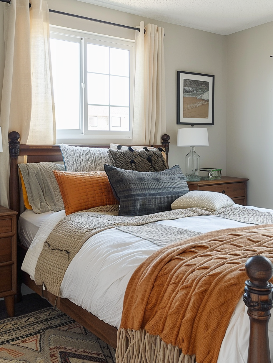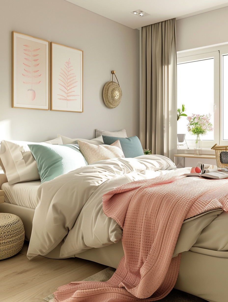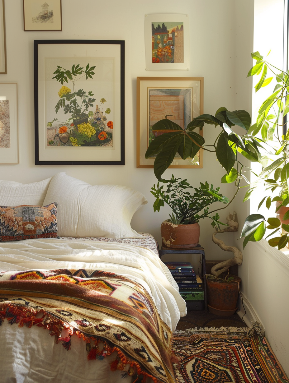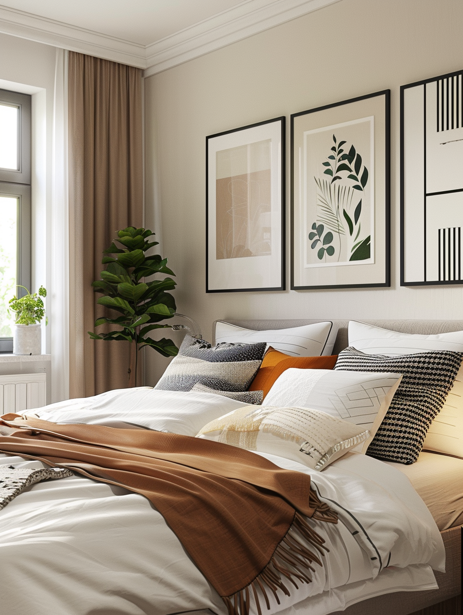 One great way to personalize a small bedroom is to add art and decor to it. It is one of the most wonderful walls in a room which changes over time. Choose two or three eye-catching pieces, such as framed prints, posters, or wall art, and match them with decorative items like throw pillows, rugs, and plants.