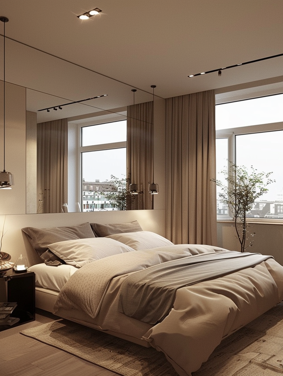 To design a small bedroom into the spacious and cozy space can be achieved through minimalism. Simplicity is the main priority in this design, with properly defined lines, light colors, and a couple of furniture and decorations selected with care. A minimalist bedroom can be a place of rest as well as an ideal living space by incorporating only those things that are necessary and implementing functionality.
