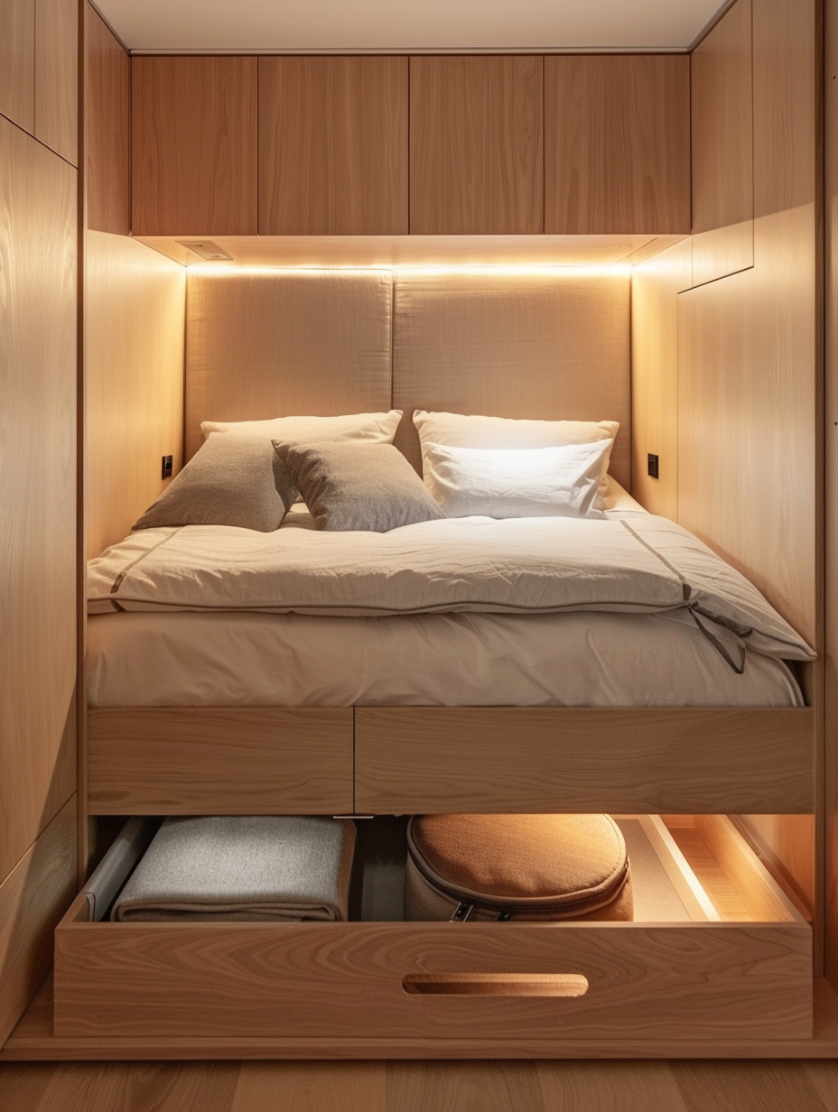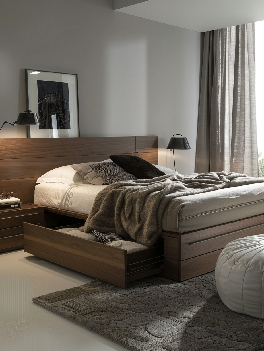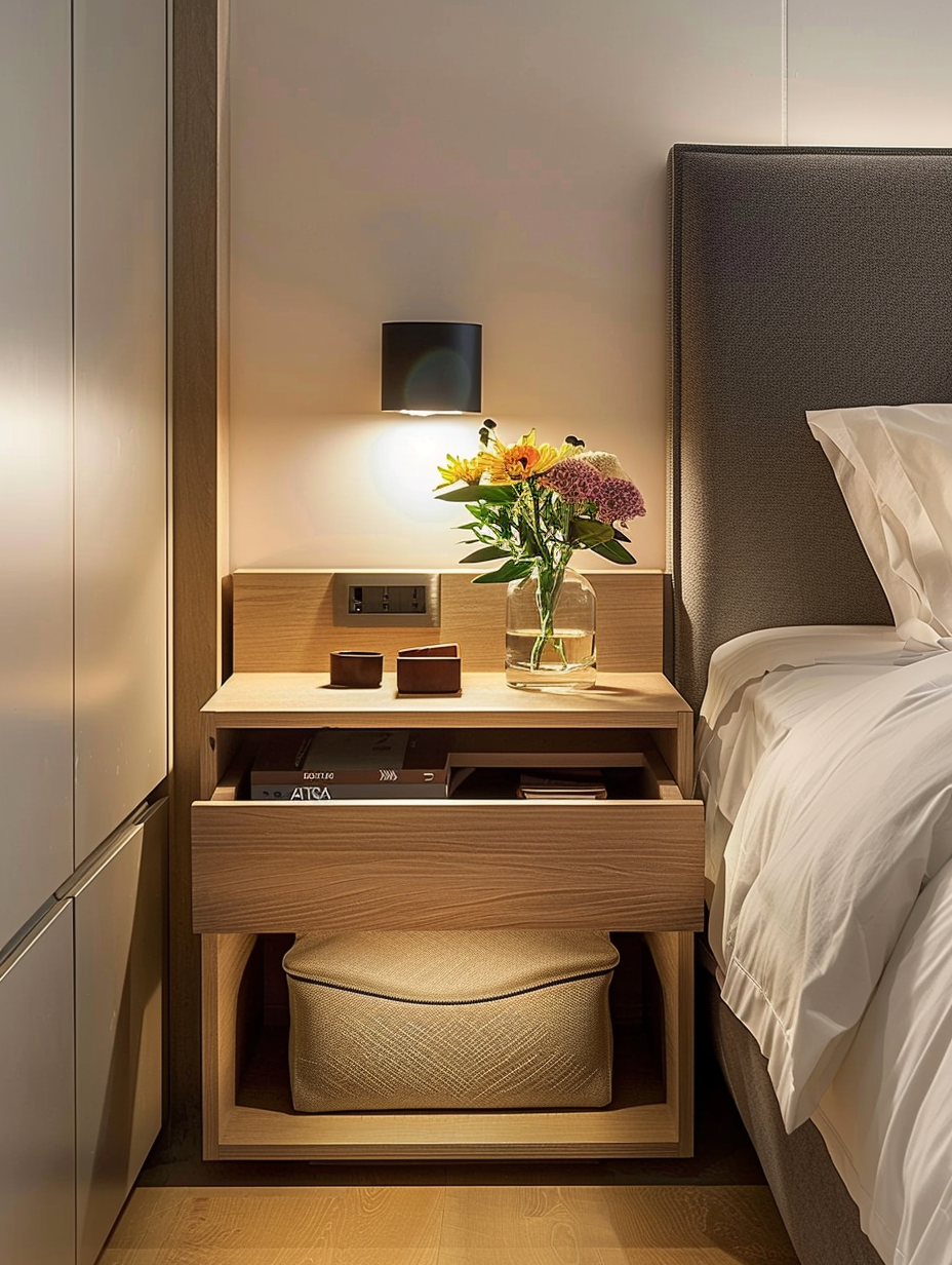 In a small bedroom, every single piece of furniture should be such that it serves a purpose. Compact bedside tables with built-in storage can also help to keep essentials near without occupying a lot of space. Nightstands with drawers or shelves can increase their functionality. This method creates a proper way so that every furniture piece including the smallest one contributes to the room’s overall efficiency.