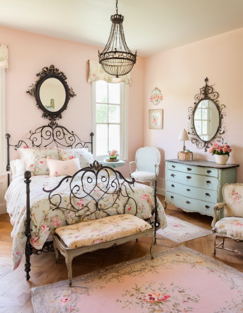 French country decor embraces a look with long-lasting beauty that also combines the traditional with the rustic. Some of the fixtures include decorated couches, light colors of cream and pale pink and a design of flowers that recall French village life. Currently, the French country bedroom entails using objects that look old, such as wrought-iron bed frames and antique mirrors. The design is so amazing for a bedroom that implies luxury and soothing atmosphere.