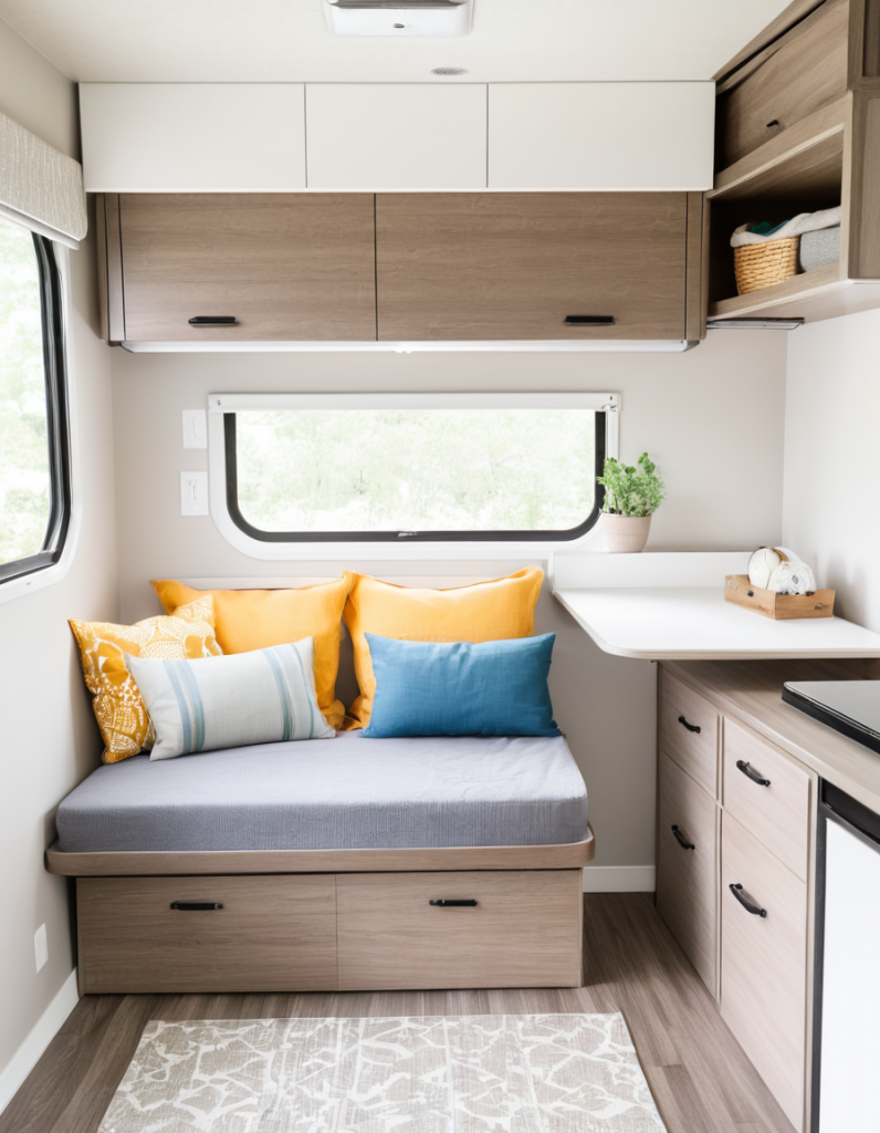 Converting a camper bedroom in 2025 into a space that not only serves the purpose of your lifestyle but also is comfortable and stylish is the main aim in the camper makeover process. In the end, smart storage solutions and furniture that can be used in different ways are the main room makeover techniques, given the fact that there is not enough space in the campers. You can consider the use of beds that fold down, attached shelves, and small seating areas that can be folded when not needed. Light, neutral colors are just a great choice for space to be visually expanded while getting a warm cozy feeling from the soft fabrics, and throw pillows.