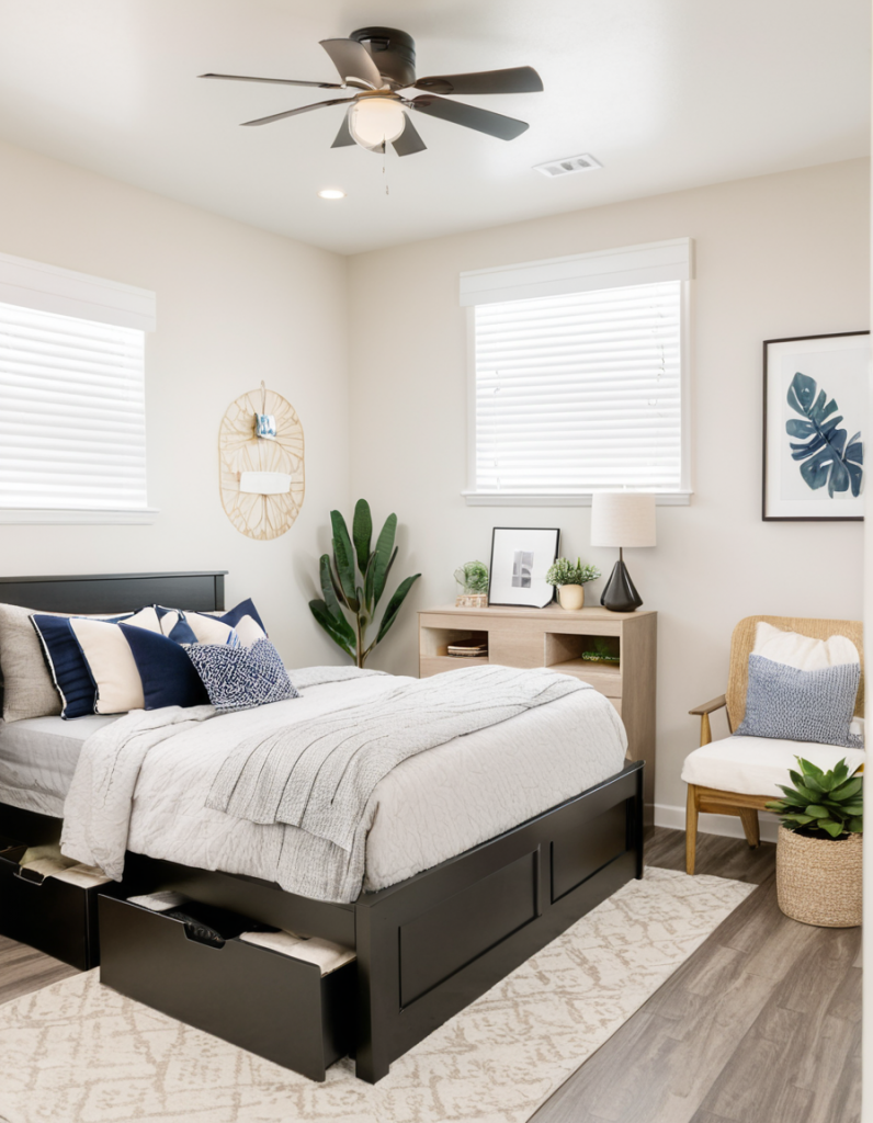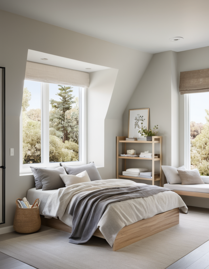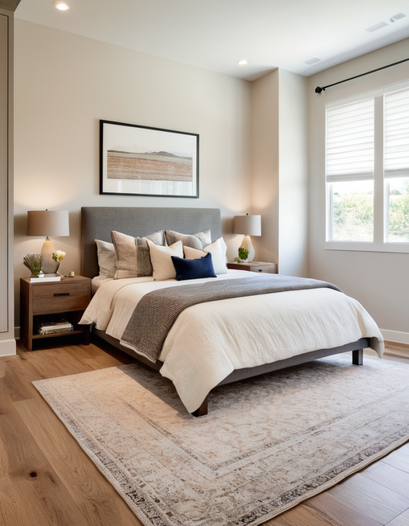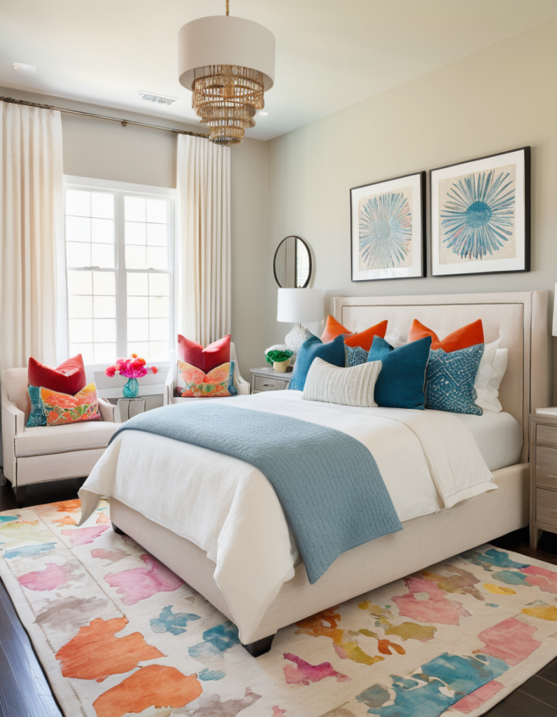 Neutral colors always make a good choice for a bedroom but, this time, in 2025, they are used in conjunction with bright colors to give the room individuality and deeply defined mood. As for the color palette, we have hues of white, beige, and grey which are basic tones, and to the combination, we can add colorful items such as robust throw pillows, healthy rugs, or striking pictures for the area to take on a more dynamic look. This fusion is a visual representation of calmness and the joy of excitement. In other words, it provides the viewer with a peaceful and a little lively atmosphere simultaneously.
