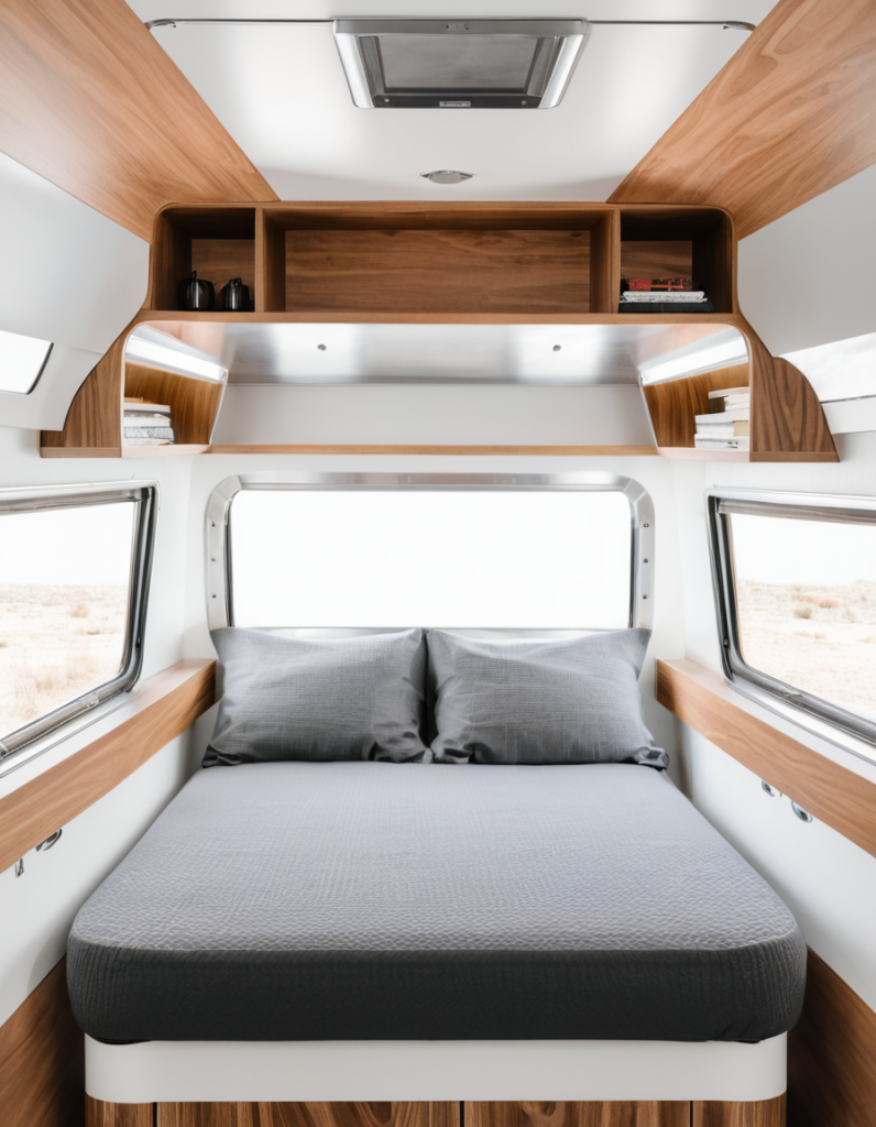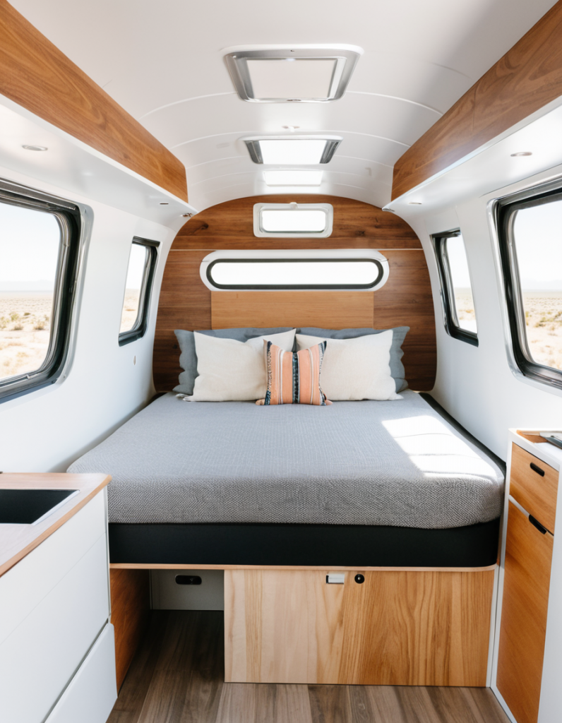 To give an Airstream bedroom a new lease of life in 2025, one has to come up with innovative ideas, which though are practical accommodation, do not deny the occupants of both comfort and style. Compact space saving furniture like the models that unfold or dig into the walls to expose the storage area and are manufactured in very slim designs. The structure should consist of metal railing and a translucent coat that allows light to penetrate through it. Light and natural colors enhance the perception of depth in the bedroom making it feel private but not in a box-save mode.