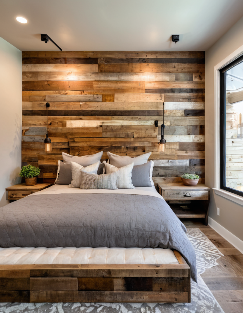 A rustic accent wall can alter a bedroom into a barn-style retreat and be your cozy and warm den. In 2025, such walls are made of reused wood, exposed brick, or shiplap, so besides communications with nature, these raw materials are also brought into the room space. These focal points are the best solution for those who want to infuse their personal style into the space along with neutral shades and earthly decorations. A weather-beaten wall is also a good accessory for showcasing the main elements of the room like a hulking bed or used oak bureau.