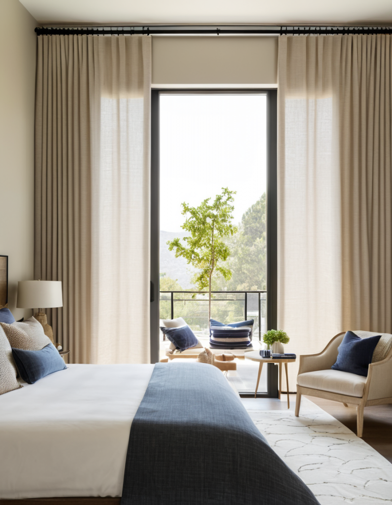 Window treatment is a vital ingredient in the transformation of bedroom’s privacy into a fashionable, peaceful place. In 2025, linen and cotton, the natural fabrics, are a popular trend in the case of curtains. The materials will provide a soft, organic look that will let some light pass through while still maintaining privacy. Blackout curtains would be another nice touch offering fully darkened and isolated sleeping atmosphere.