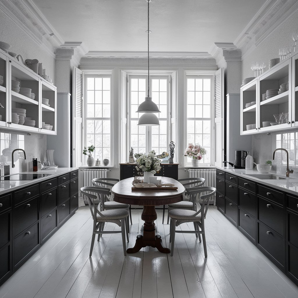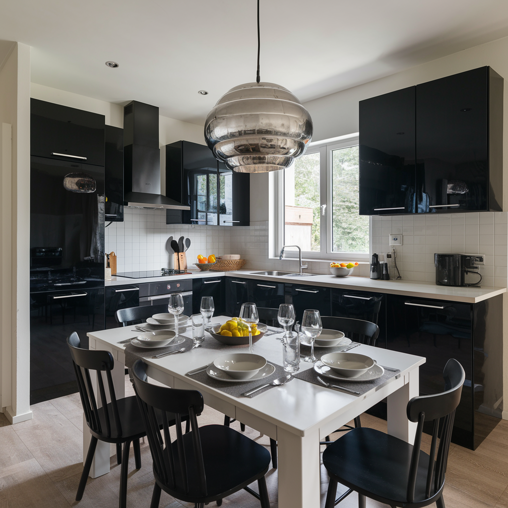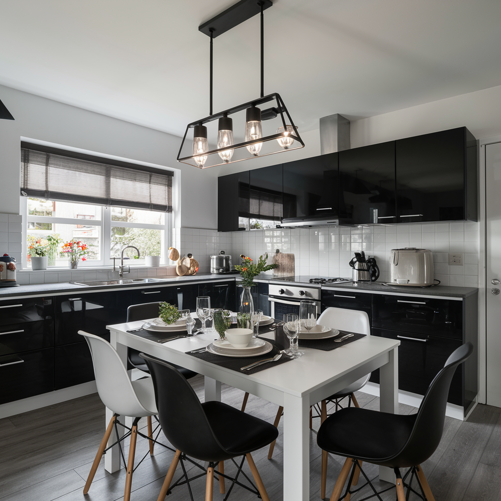 Black and White Dining Area Integration