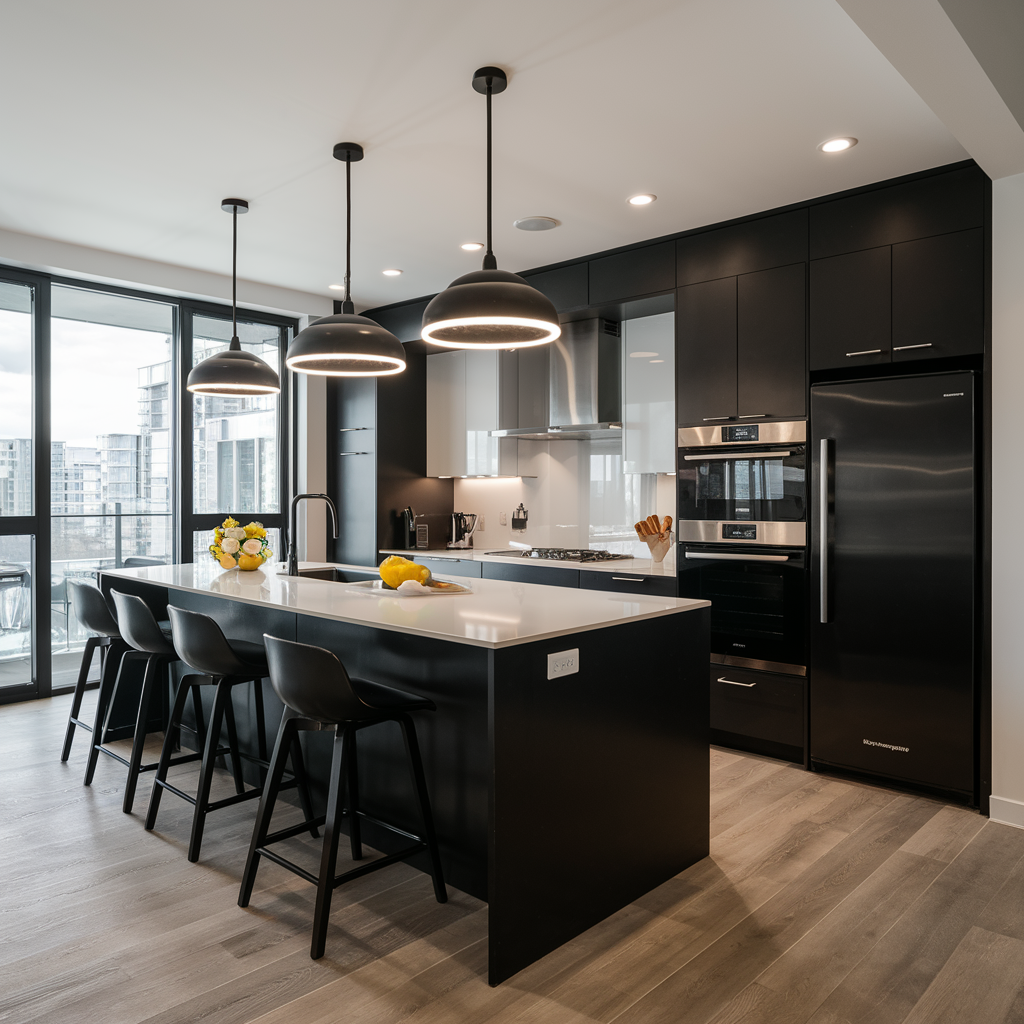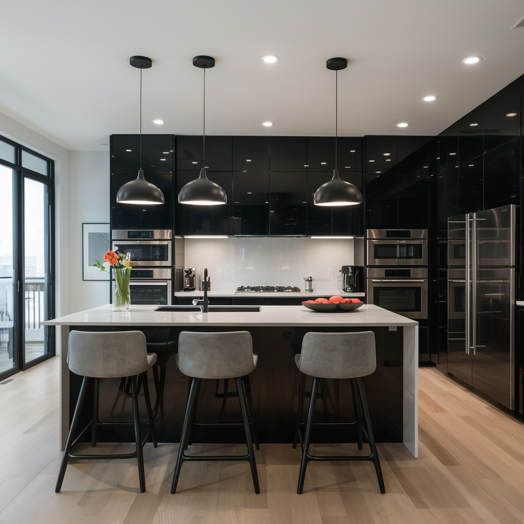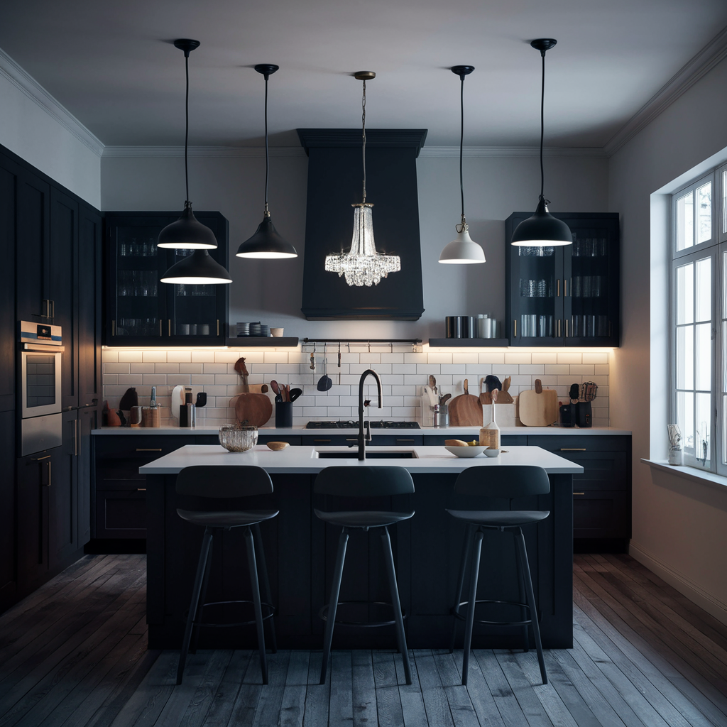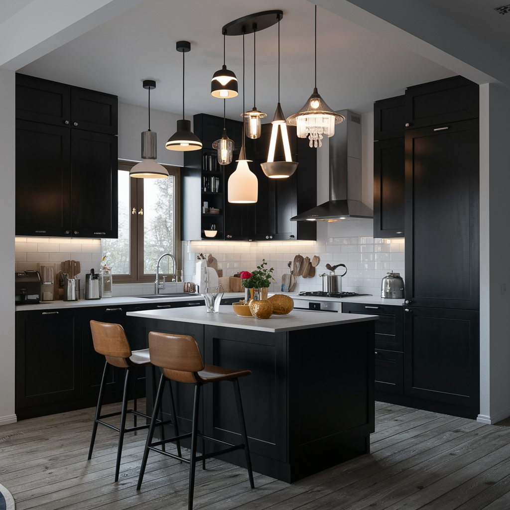 Lighting plays a big role in the design of a black and white kitchen. Modern lighting like pendant lights, chandeliers, and under-cabinet lighting can emphasize the monochrome scheme of things and add a bit of trendiness. The idea is to select fixtures in black, white, or a metal finish to allow them to naturally fit into the whole design. Correct lighting affects the functionality and mood of the space.