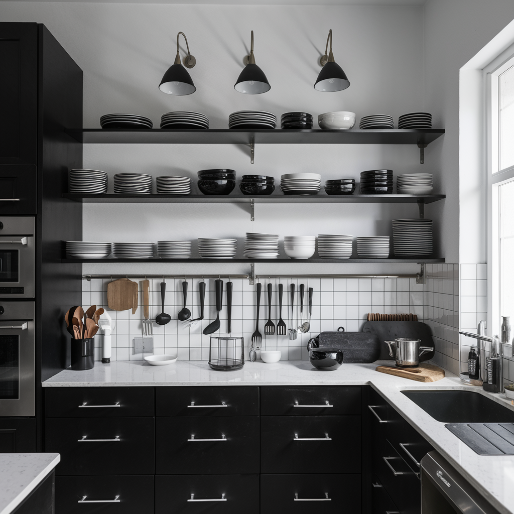 Black and White Open Shelving