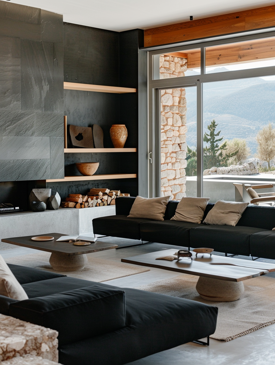Black and Wood Living Room Combos