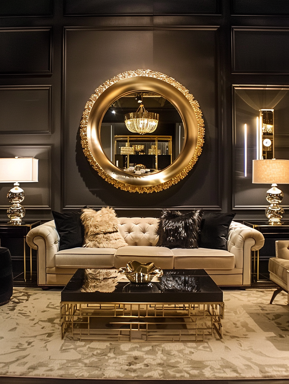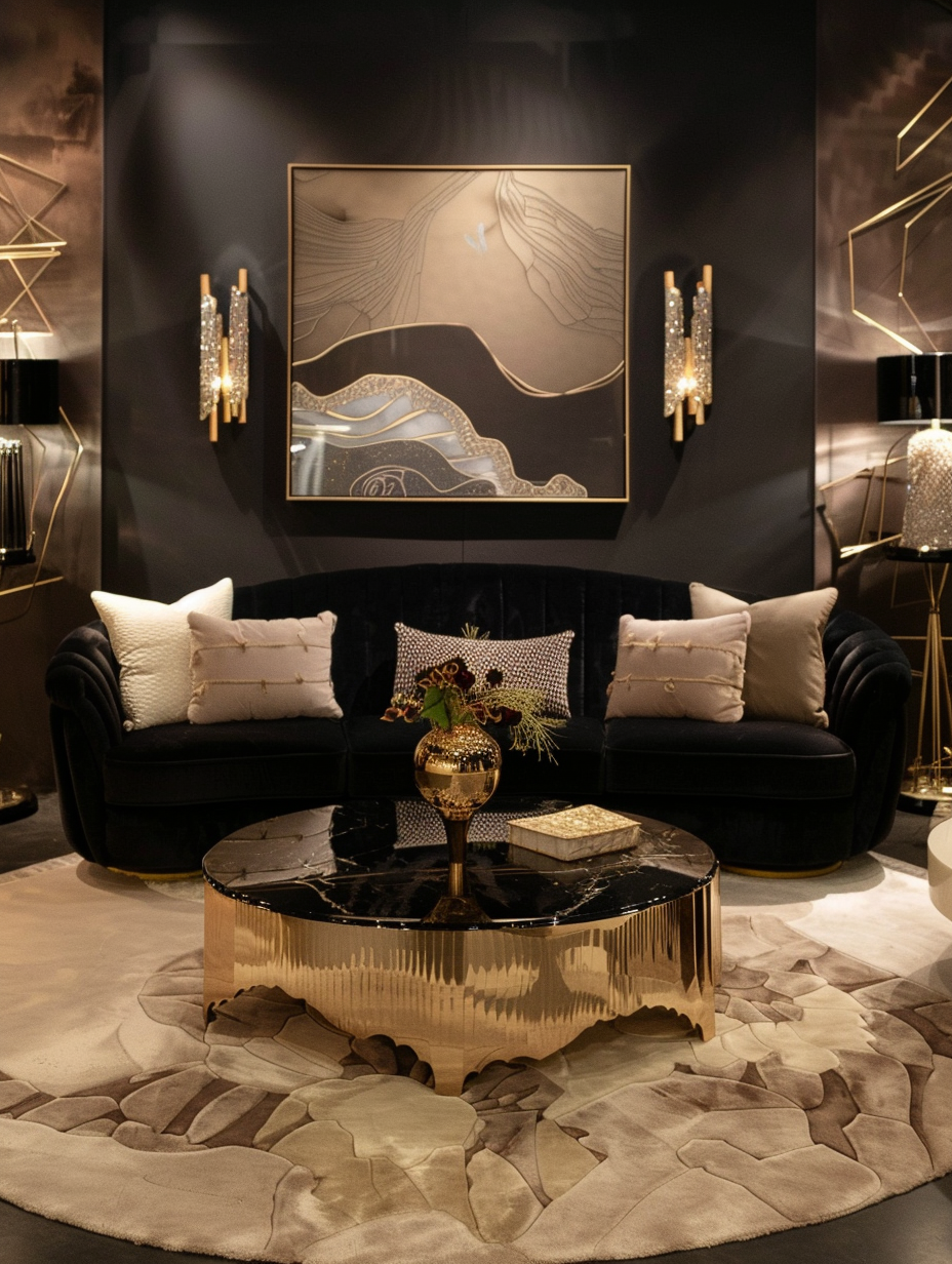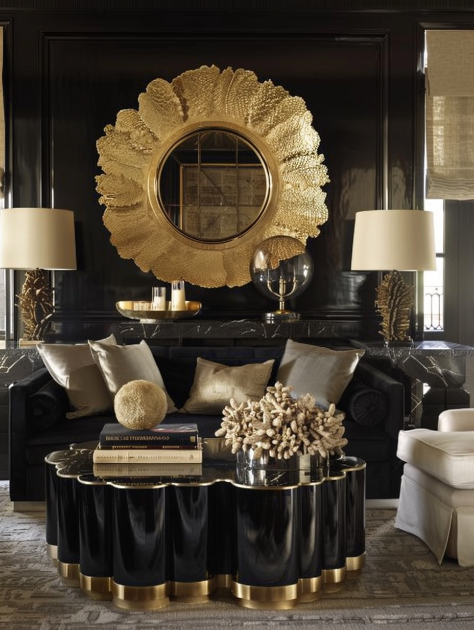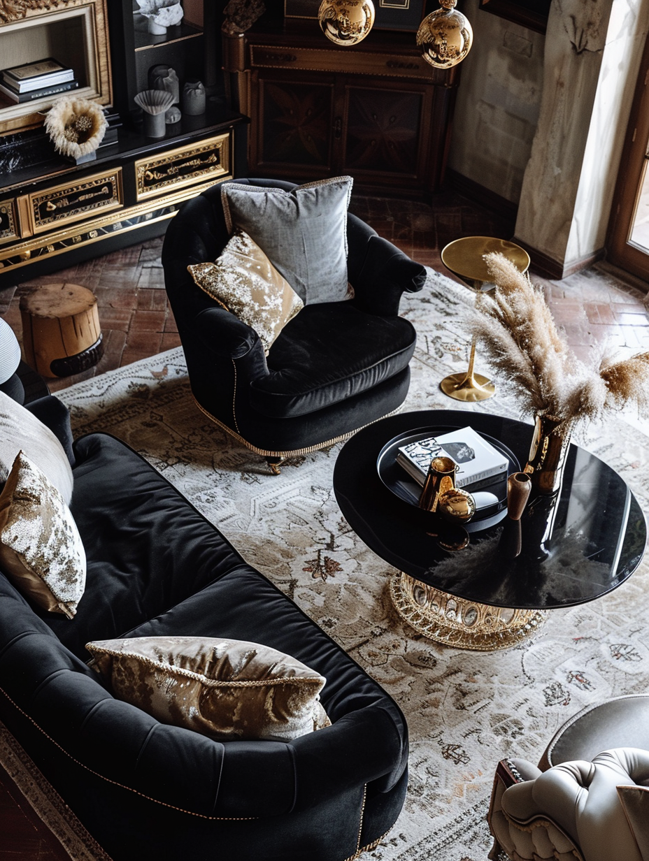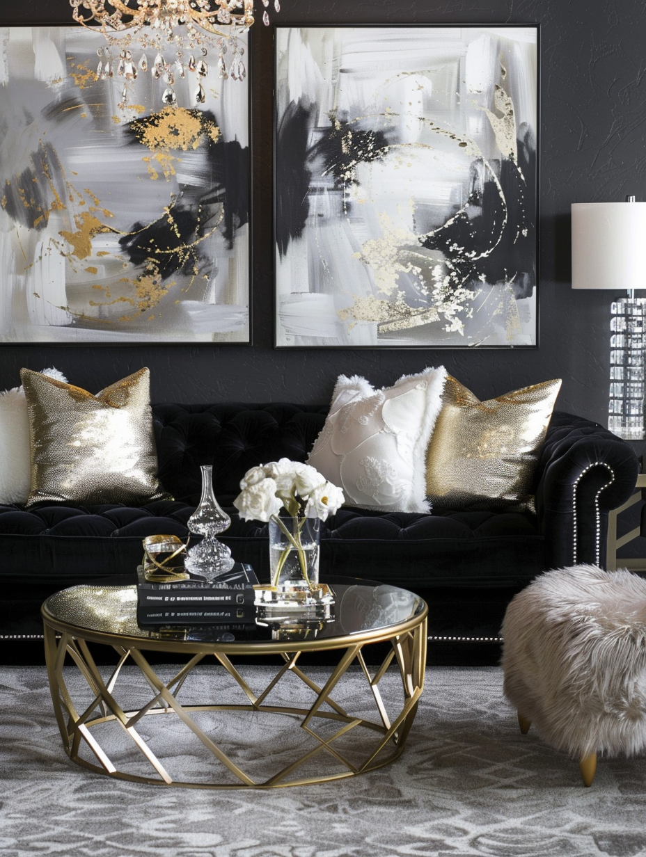 Black Living Room with Gold Accents