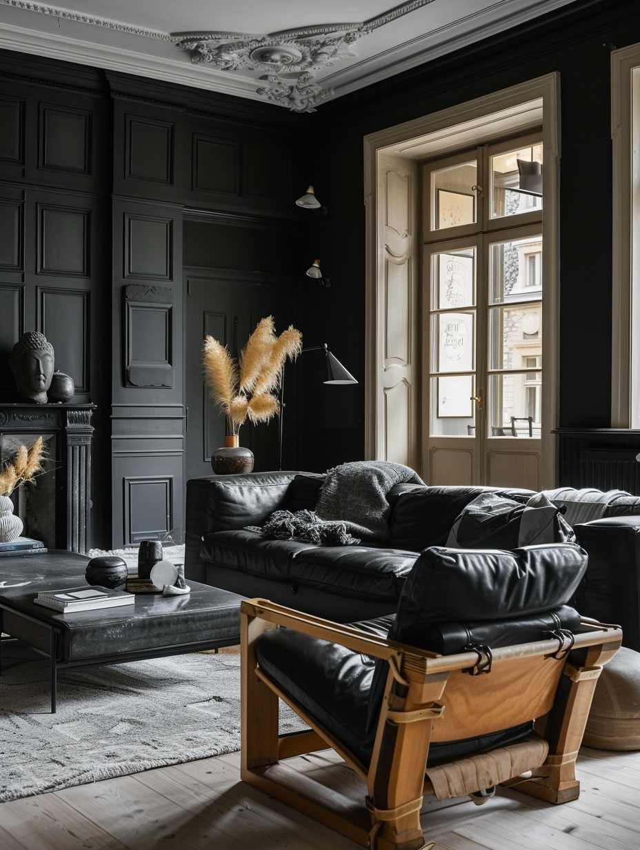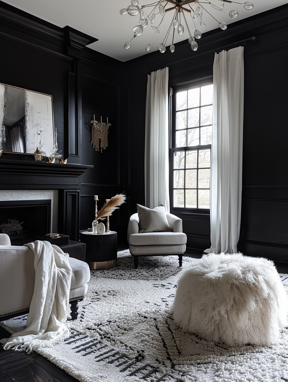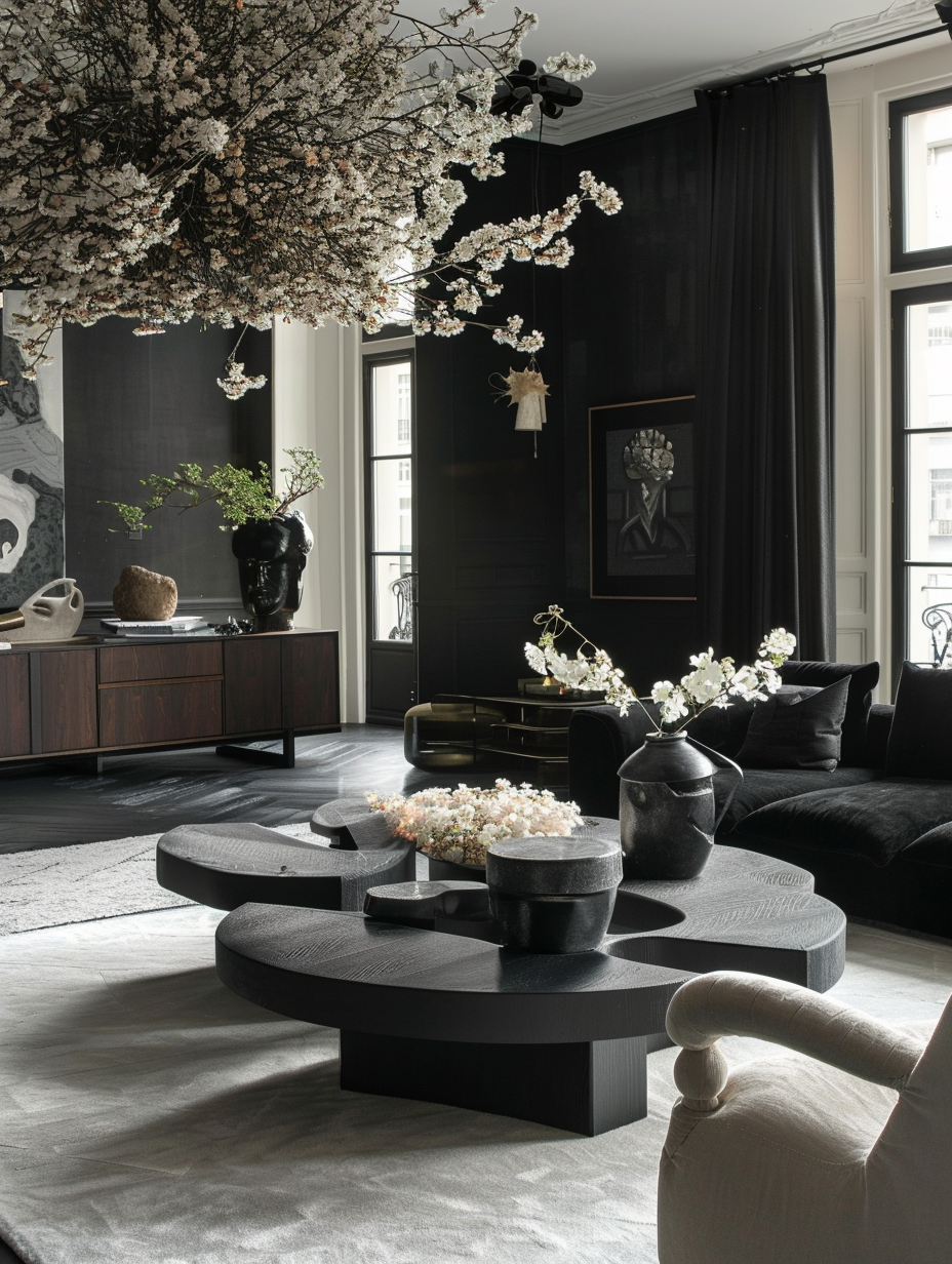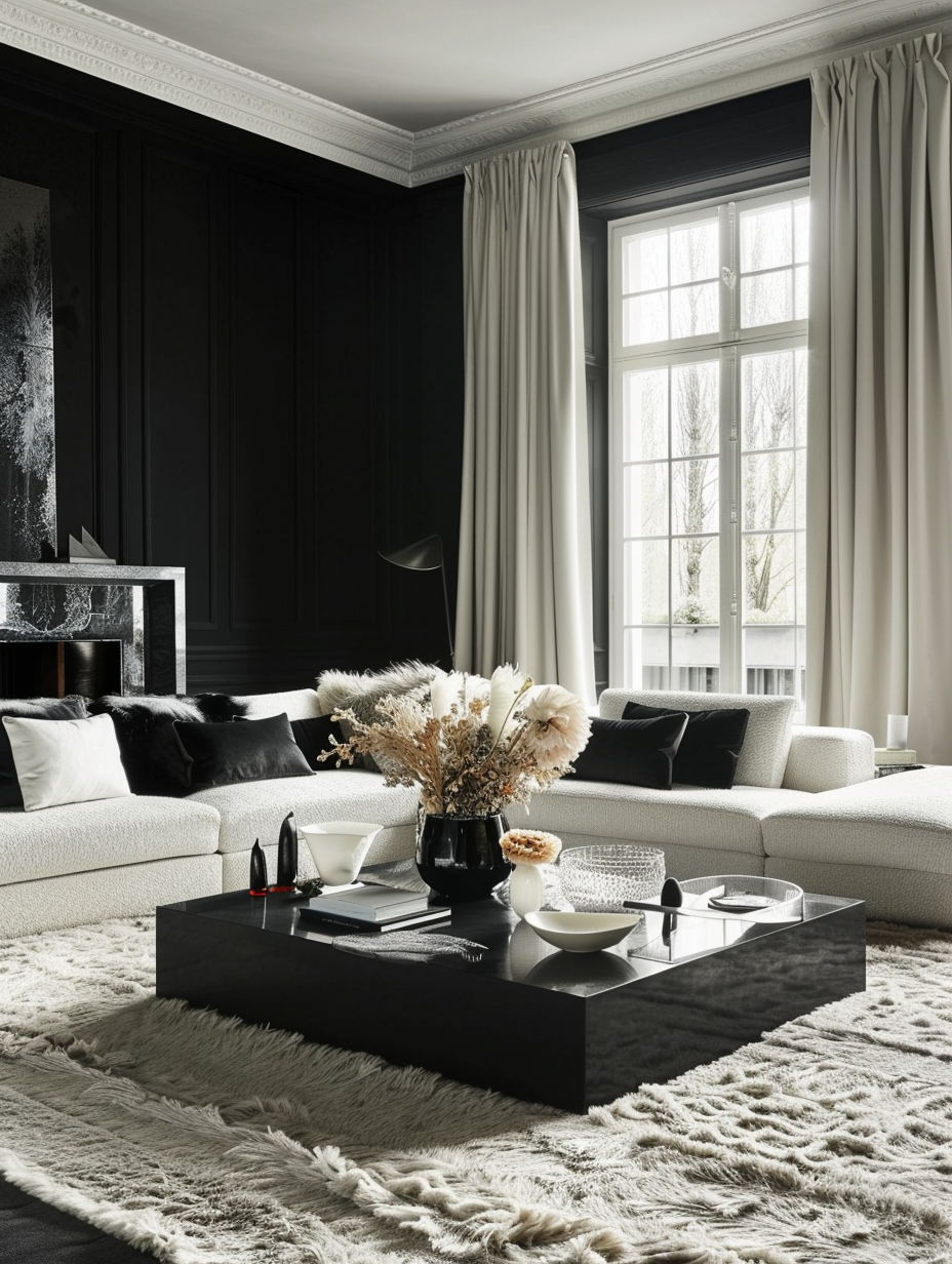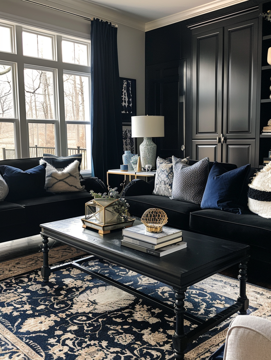 High-Contrast Black Living Room Themes