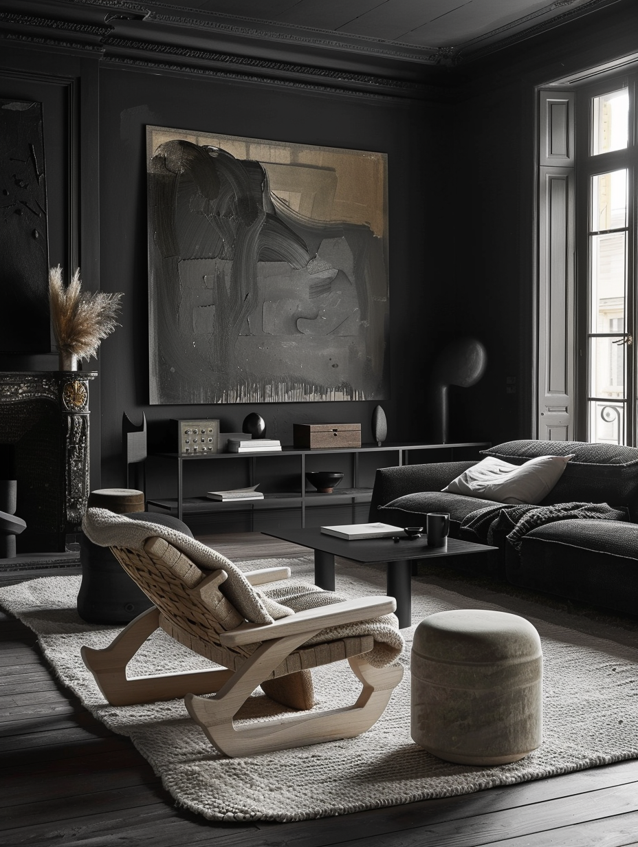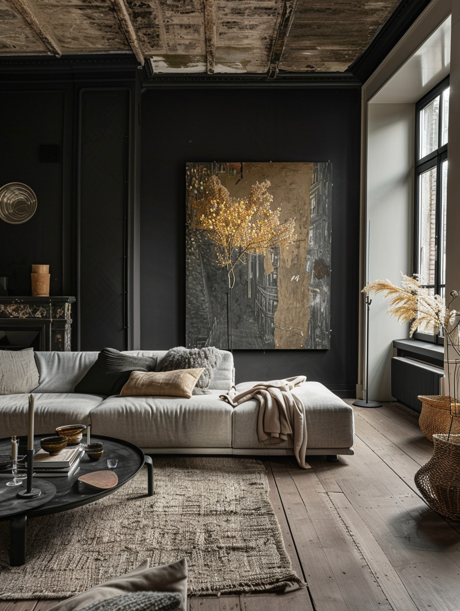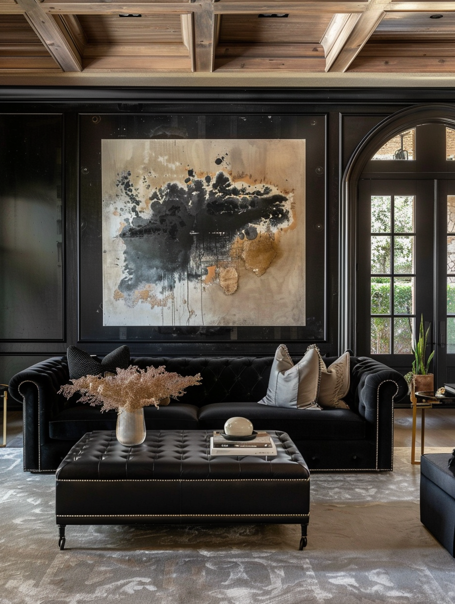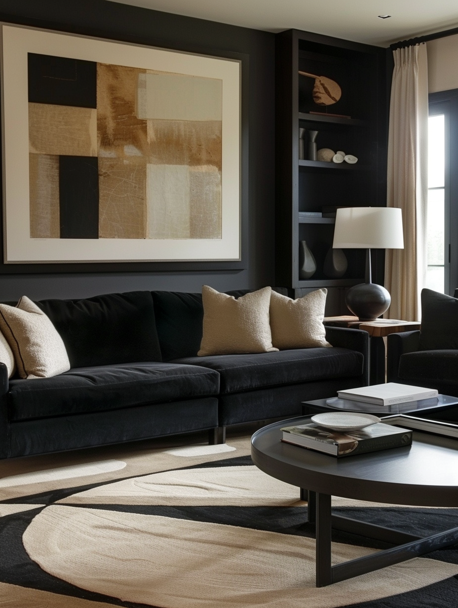 Black Living Room with Bold Artwork