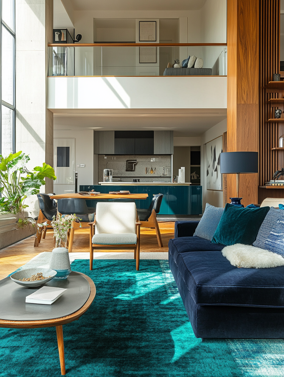 Rugs and carpets in the colors of blue and green can ground your living room and connect different parts of the decor. Select the pattern or solid color that harmonizes with the total color scheme. A teal or navy rug can give an element of coziness and a steak whilst increasing the room’s aesthetic appeal.