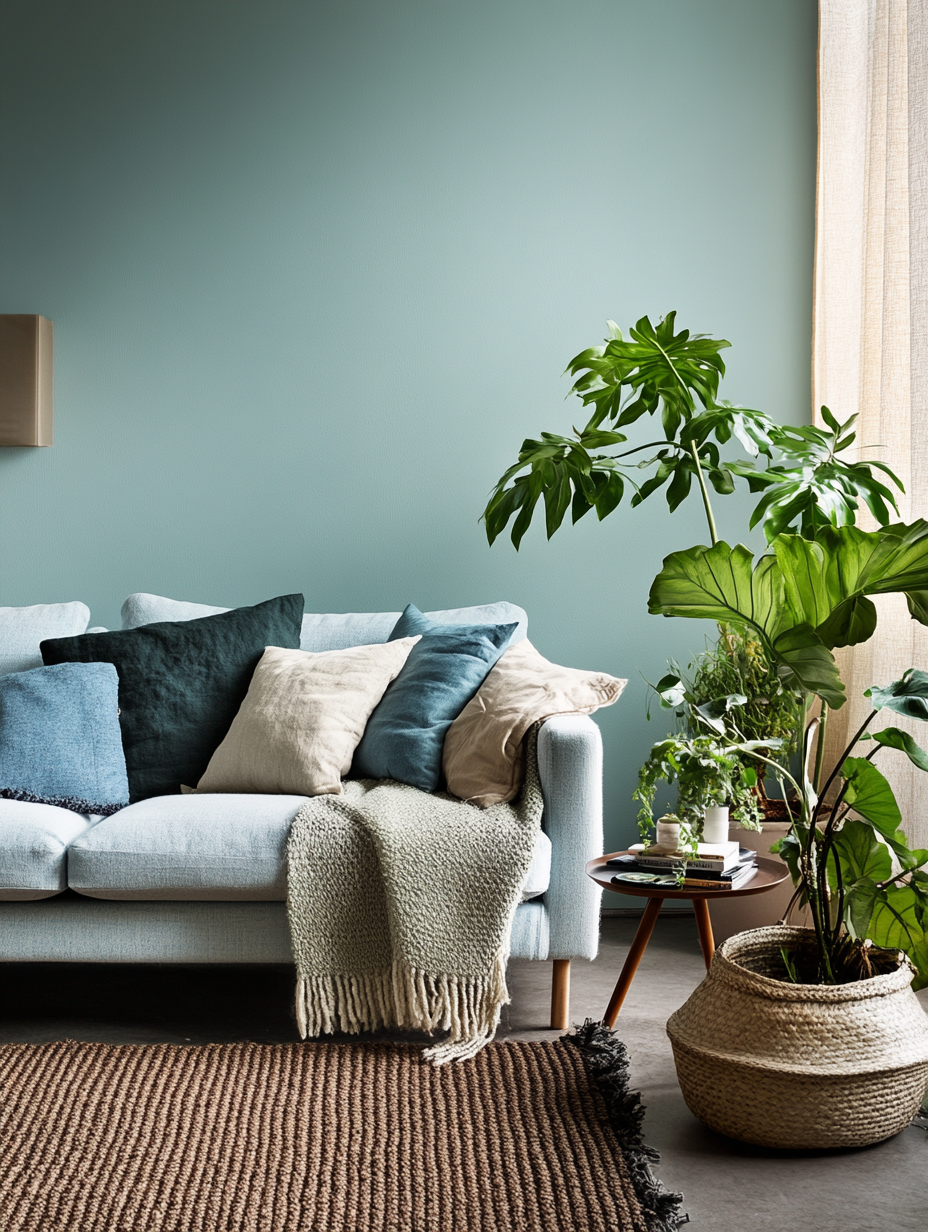 Scandinavian design is all about functionality and simplicity. Mixing blue and green using soft furnishings and natural materials remains popular today. Light blue walls and green plants can create the room’s bright look, and a dark or brown rug can be used as a contrast.