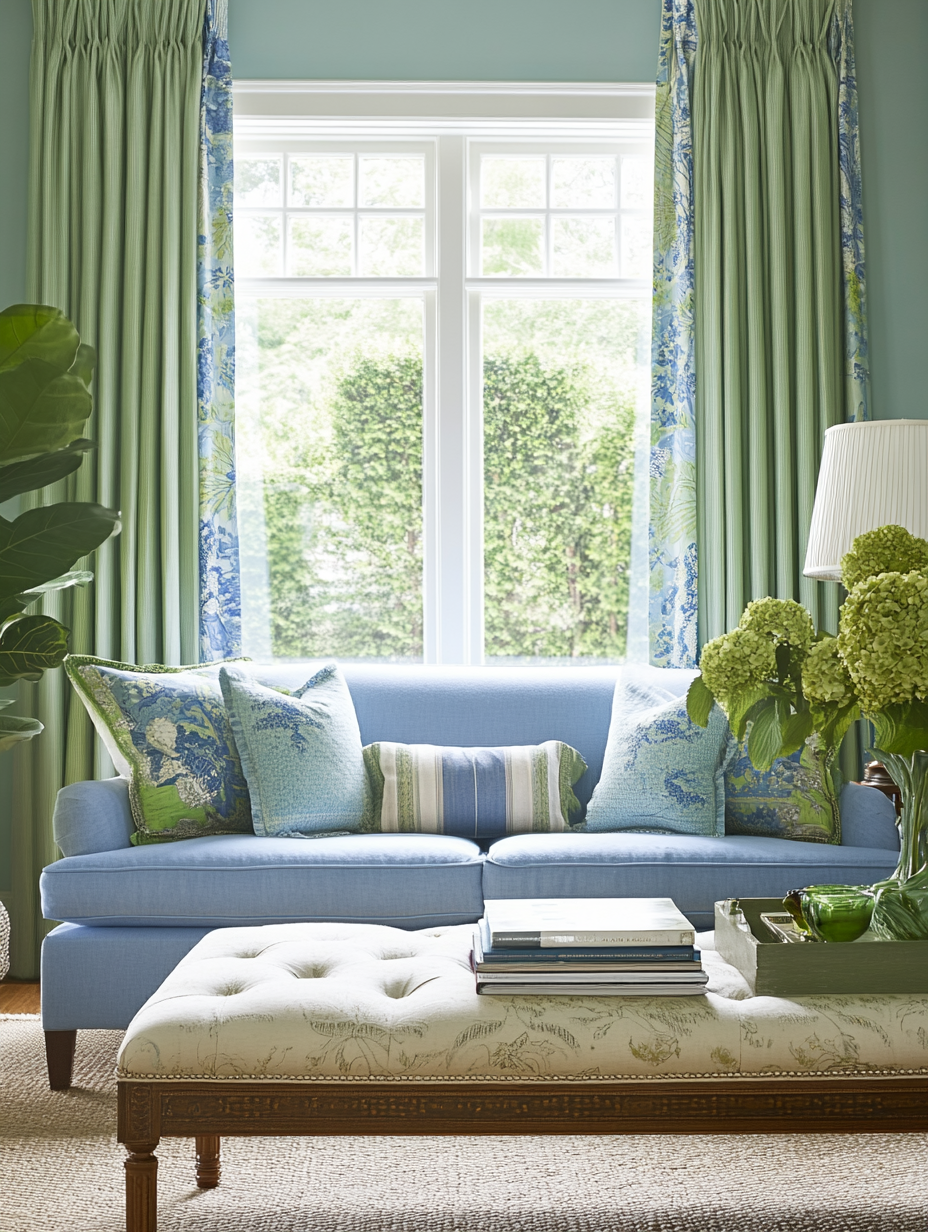 Blue and Green Window Treatments