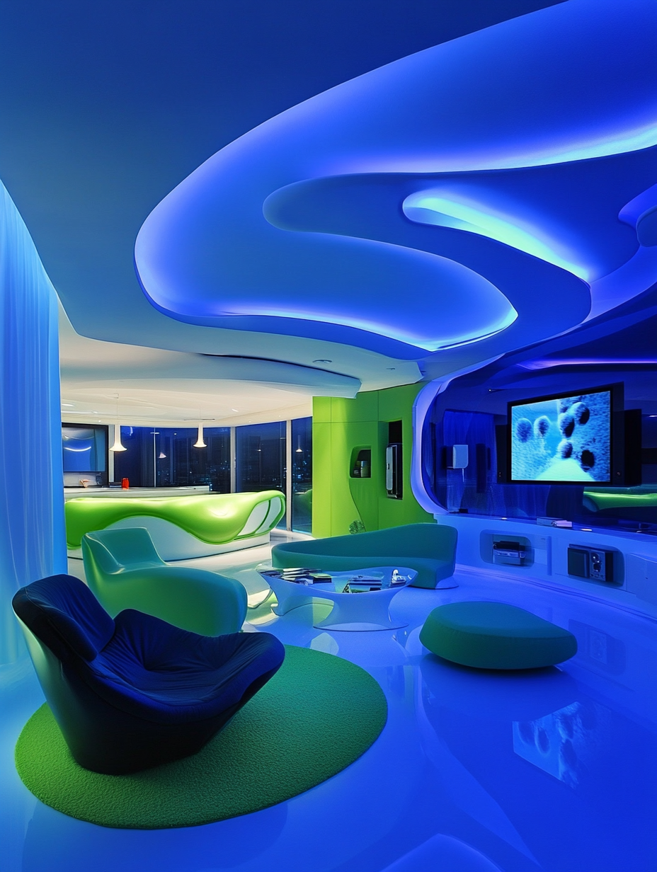 Blue and Green in High-Tech Living Rooms