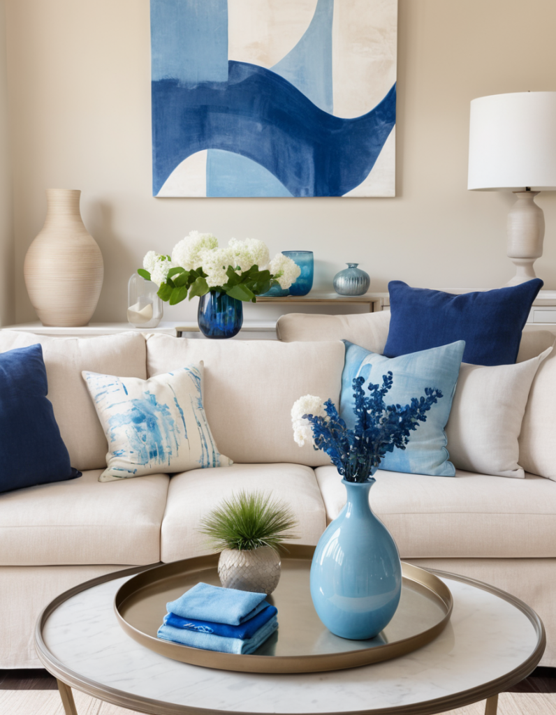 If you’re apprehensive about fully embracing the blue color, incorporating soft blue living room accessories in the form of accessories is the most suitable way to do so. Think about adding light tones of blue with articles like pillows, throws, ink, or vases. These pieces can improve the tone of your existing color scheme while at the same time not overfilling the space. The lighter tones such as sky blue or duck egg blue are particularly effective in neutral environments because they provide a splash of color without becoming the dominant note.