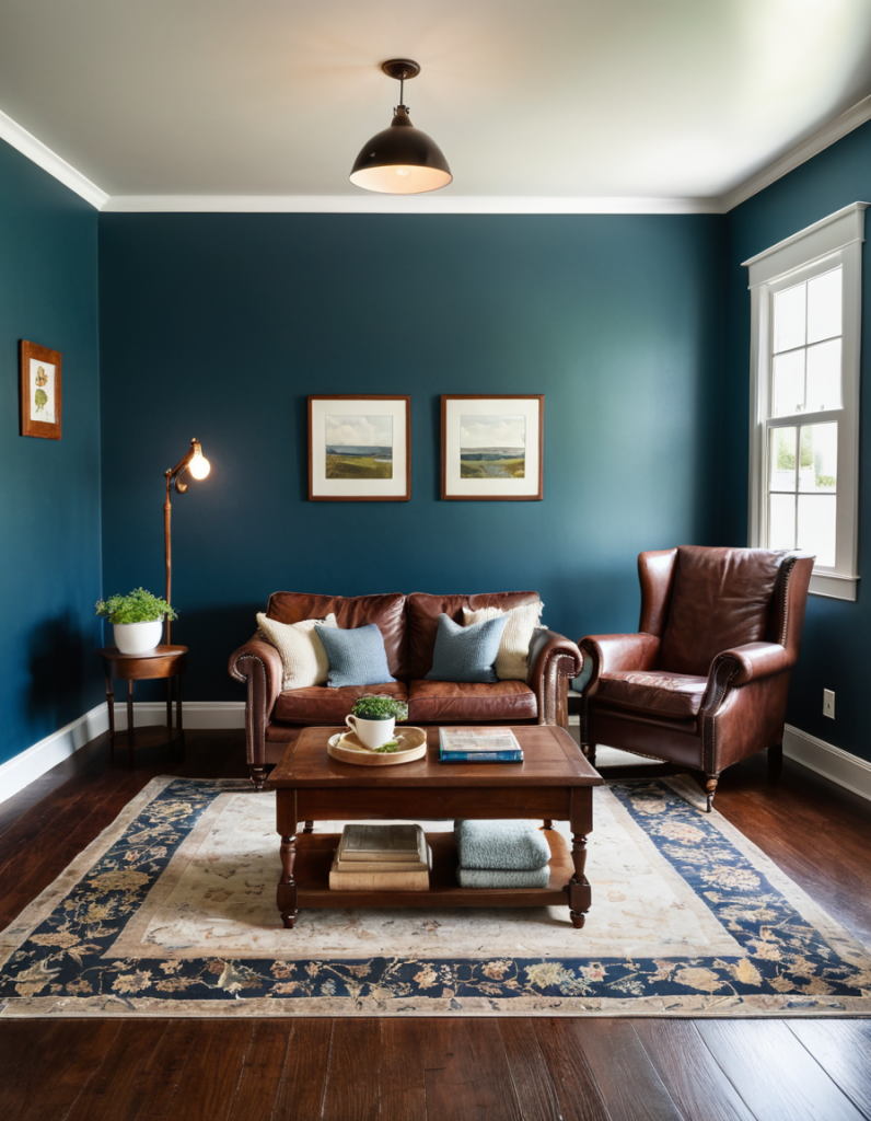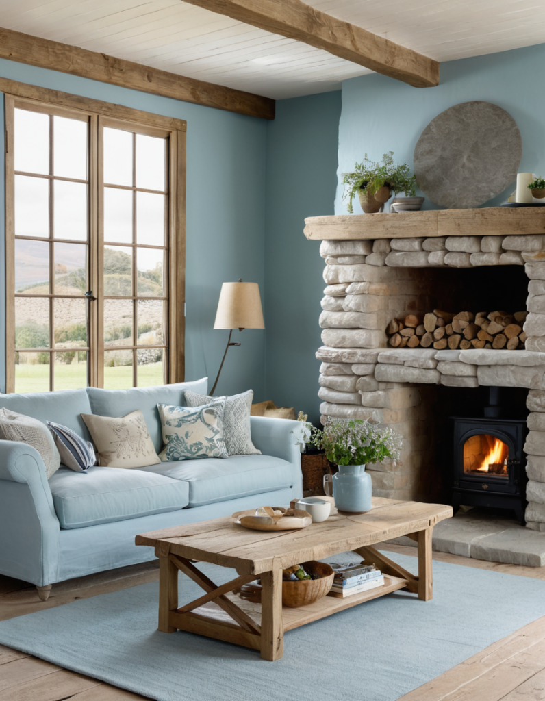 For a cozy, down-to-earth vibe, azure living rooms or humble living rooms that have brick walls with an old-style depth of time in them, as well as other such suggestions of the beautiful naturalness of the place, are perfect for blues with a rustic accent. This kind of decorations are often earthy with wood and stone materials and bio-fertilizer among others. Combine hues of blue, such as duck eggs or silvery blues, with the rural resource, renewable wood, wool or woven grass carpets, and the red brick for example in terms of house materials or walls, which takes the dark and cold colors and gives them a warm feeling rather than just a dramatic look.