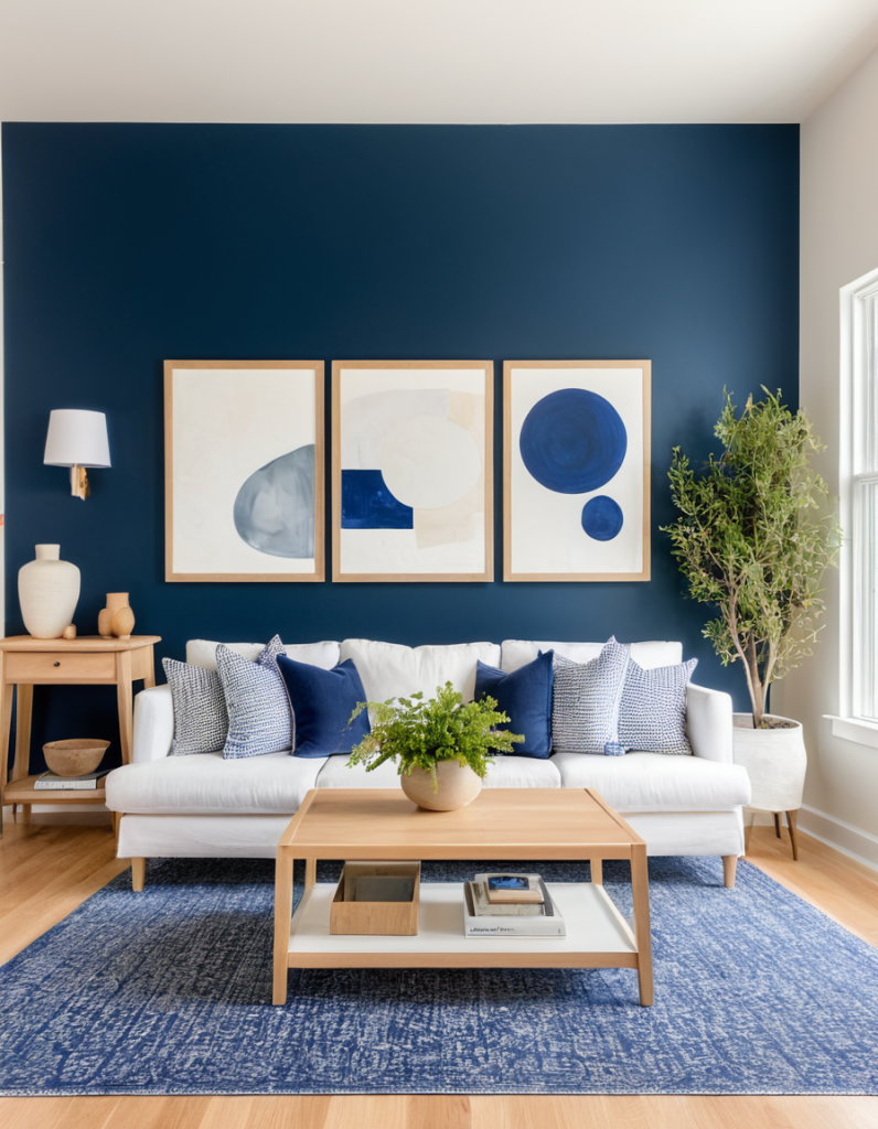 For people who are after warmth and comfort, midnight blue is the ultimate hue. This deep and rich color has the ability to turn the living room into a private, warm retreat especially when incorporated with cozy materials like wool or velvet. Place the midnight blue on the walls or a centerpiece piece such as a sofa, and then pair it with warm wood tones and soft lighting to make a cozy environment that is perfect for rest.