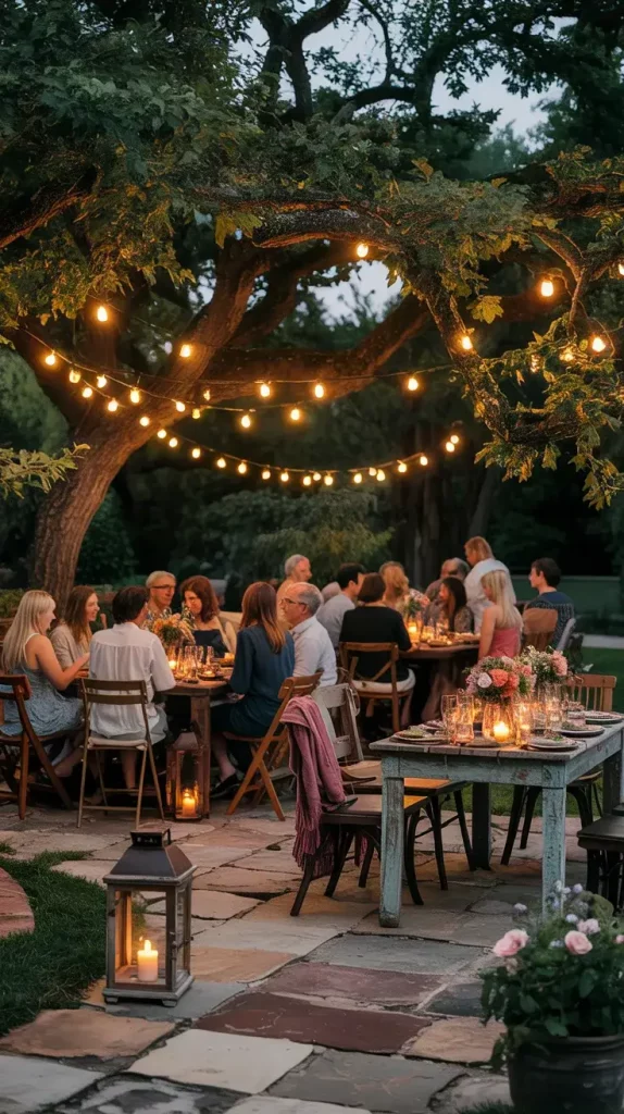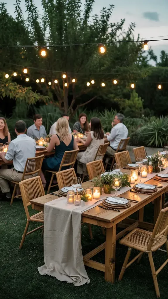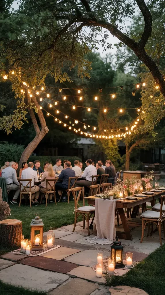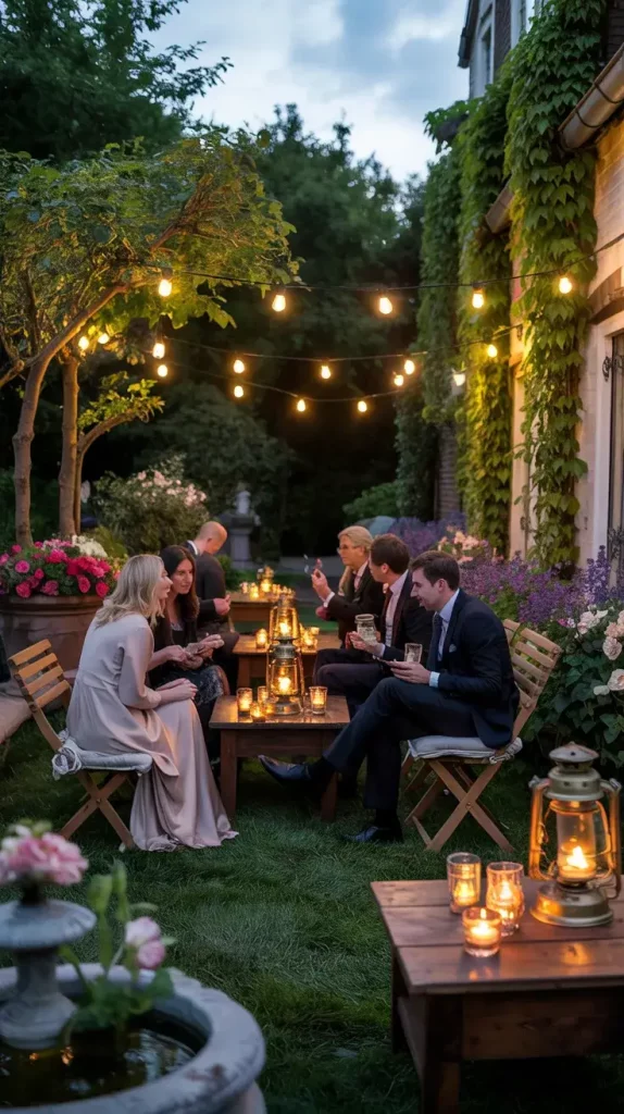 I typically combine string lights, lanterns, and candles to achieve this effect. Fairy lights draped across trees or pergolas provide ambient illumination, while lanterns placed on the ground or tables add depth. Candles, especially in glass or metal holders, introduce a flickering element that makes the space feel intimate and inviting.