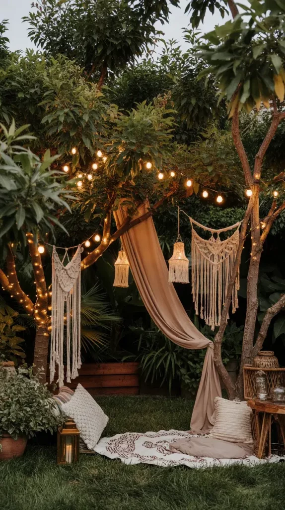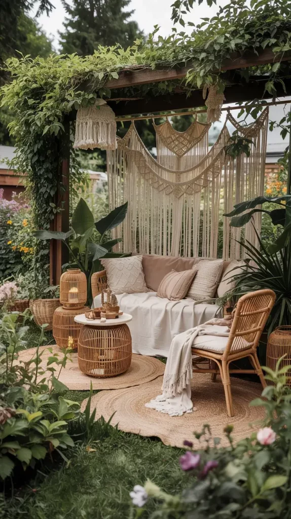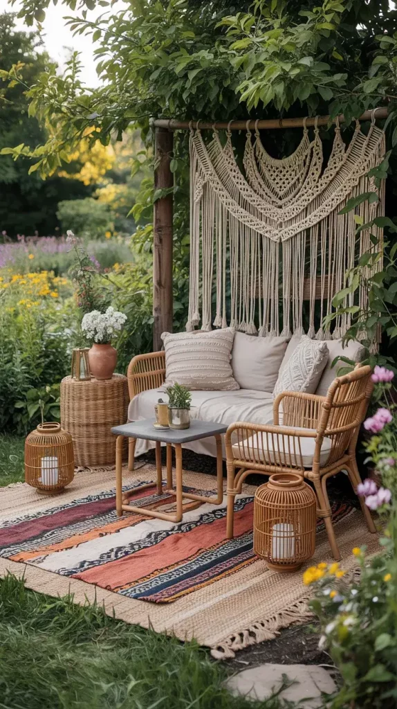 In my work with boho rustic garden party decor 2026, macramé and woven elements are essential for adding texture and visual interest. These details instantly transform a simple outdoor space into a styled environment with depth and character. Hanging macramé backdrops, woven rugs, and handcrafted wall hangings create focal points that draw attention without overwhelming the setting. I often use these elements to define specific zones within the garden.