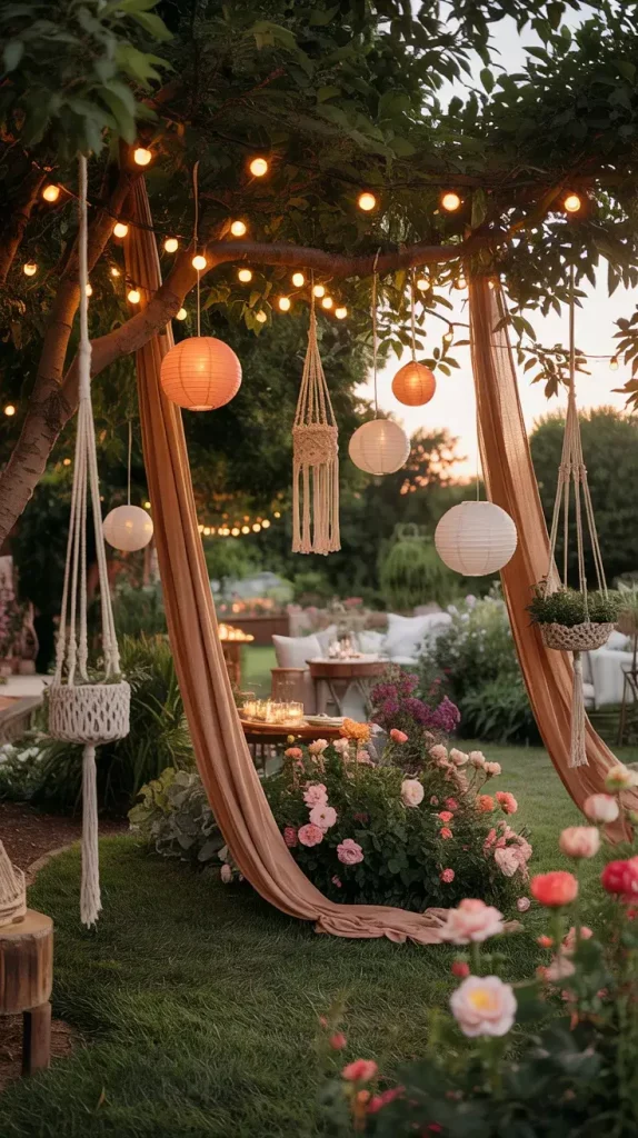 Incorporating natural elements is a key principle of boho rustic garden party decor 2026, and I always make use of existing trees and structures to enhance the design. Decorating these features allows me to integrate the decor seamlessly into the environment, creating a cohesive and immersive experience. This approach is both practical and visually impactful.