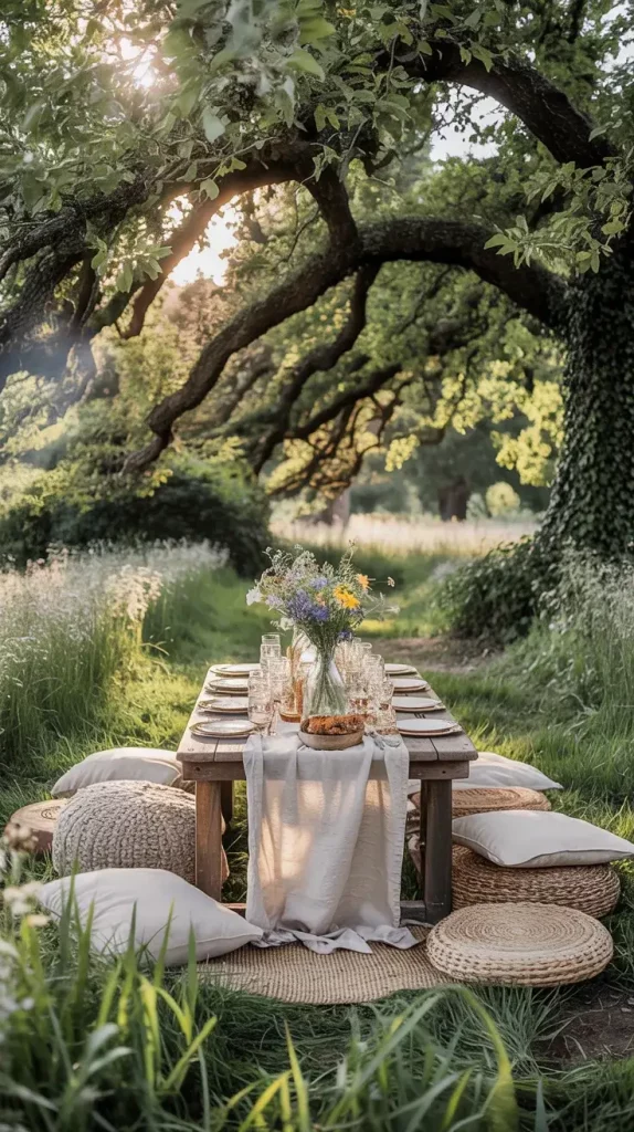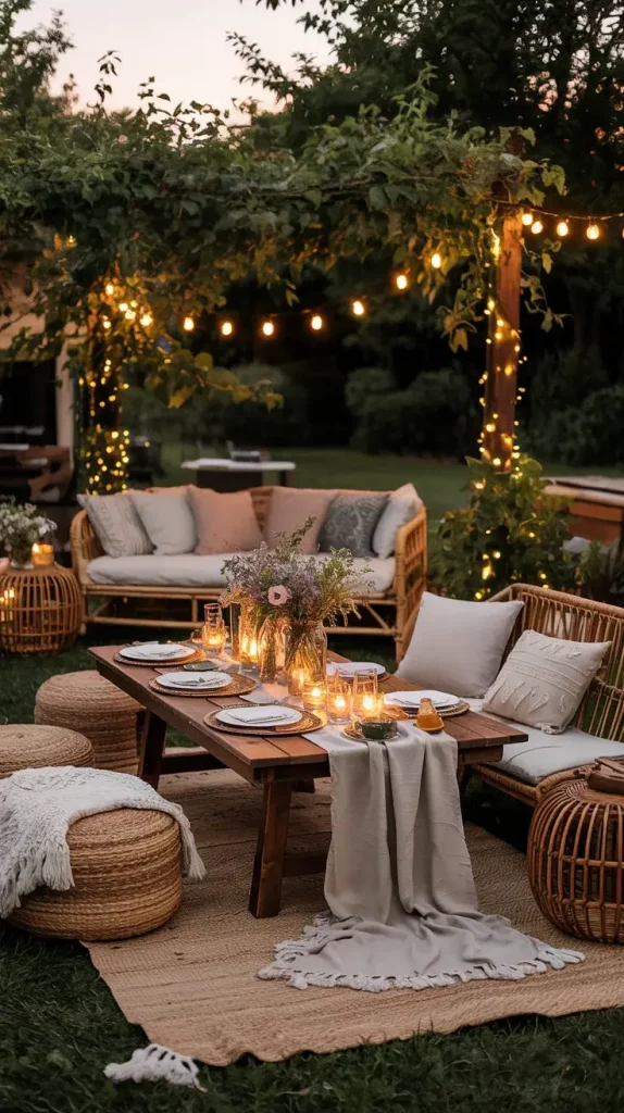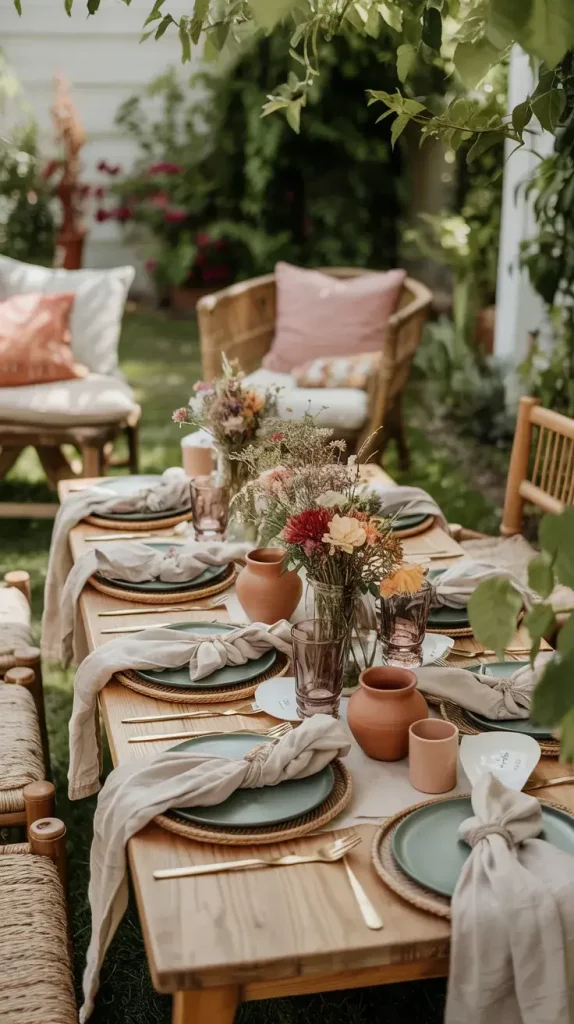 I see the boho rustic garden party decor 2026 aesthetic as a thoughtful blend of relaxed bohemian elements and raw, organic textures. It’s about creating a space that feels natural, slightly imperfect, yet intentionally designed. I focus on layering earthy tones, incorporating handcrafted details, and allowing the outdoor environment to remain the centerpiece. This approach makes the setting feel grounded and authentic rather than overly styled.