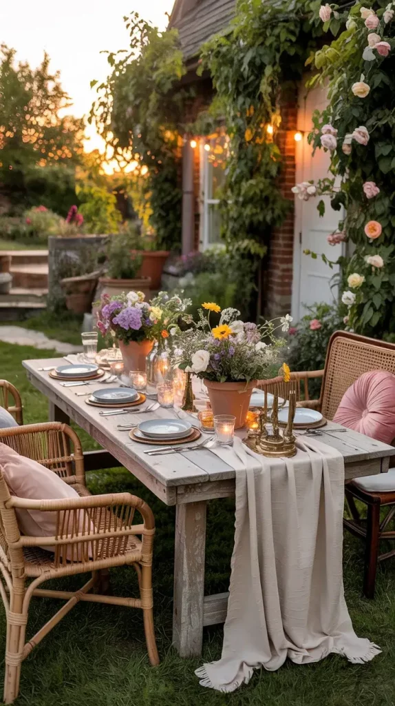One of the most enjoyable aspects of boho rustic garden party decor 2026 is the freedom to mix vintage finds with handmade pieces. I approach this by selecting items that feel collected over time rather than newly purchased, which gives the space a layered and meaningful look. This mix creates depth and tells a visual story.