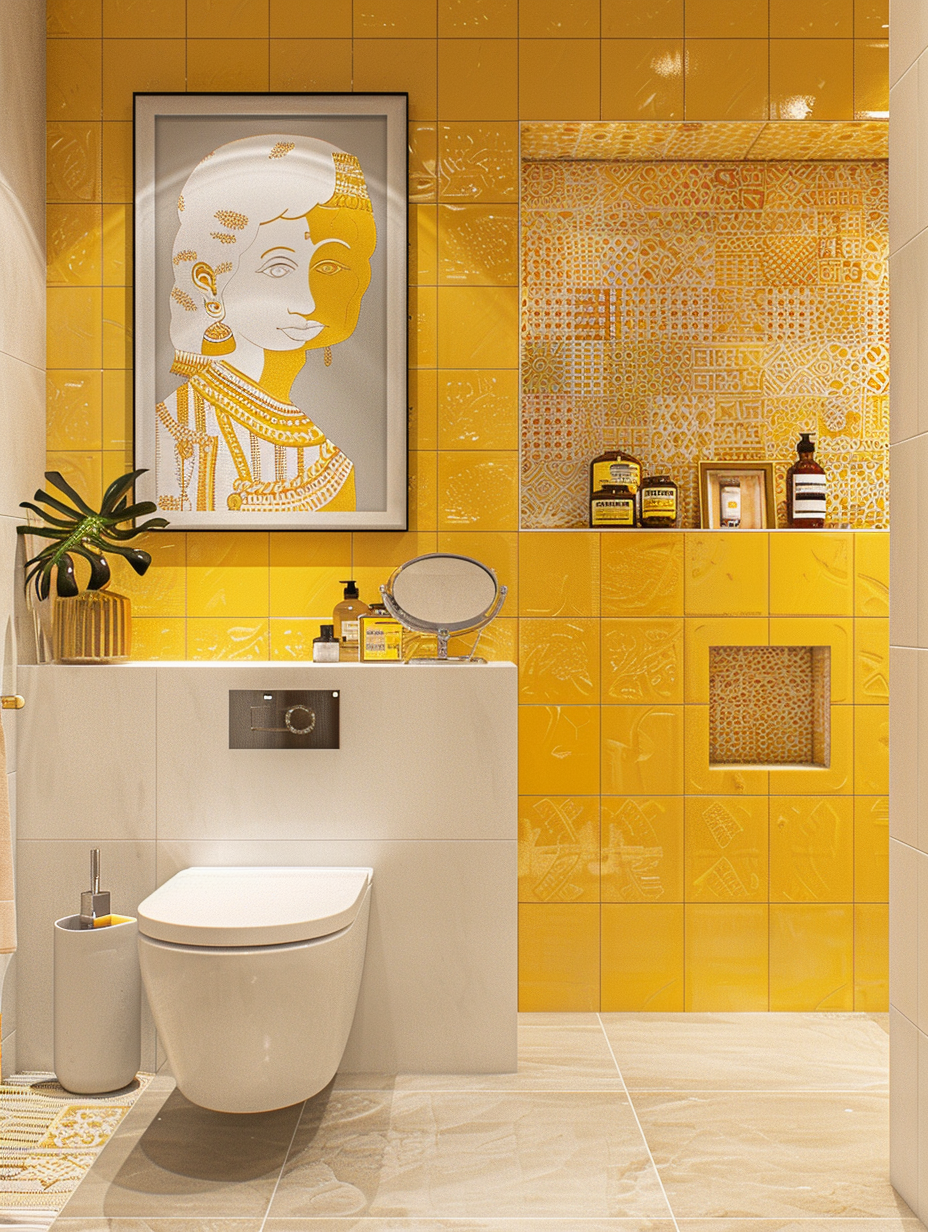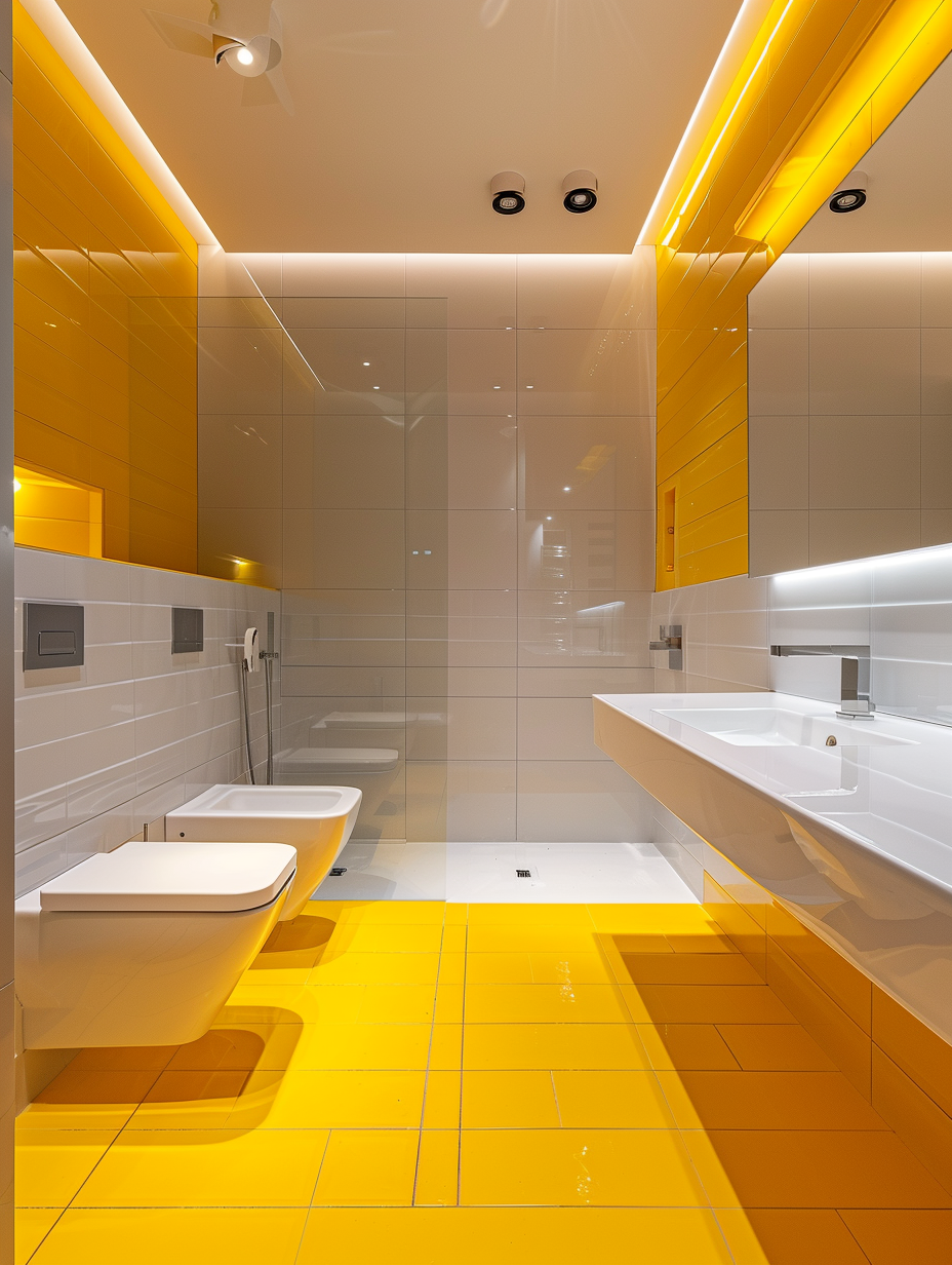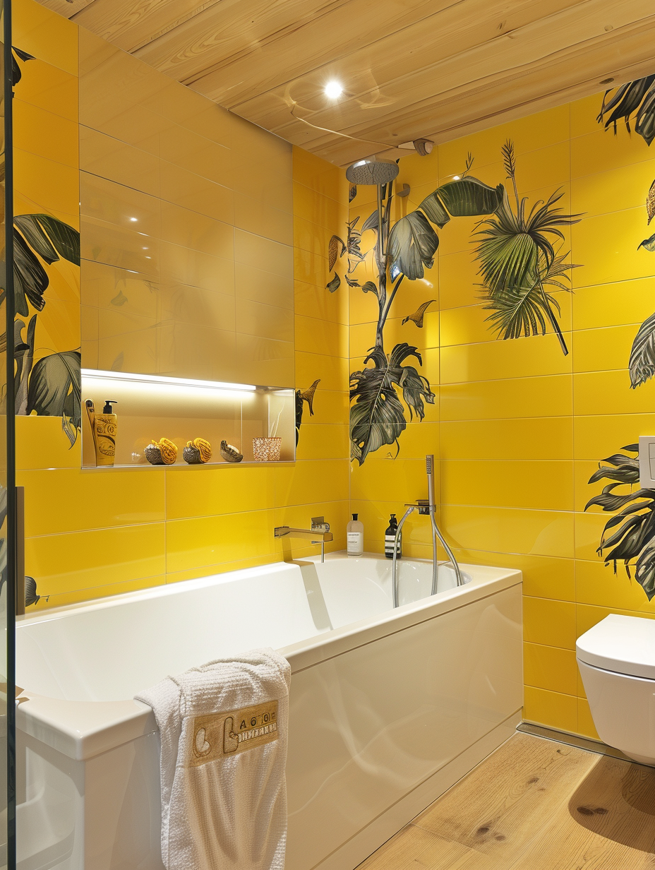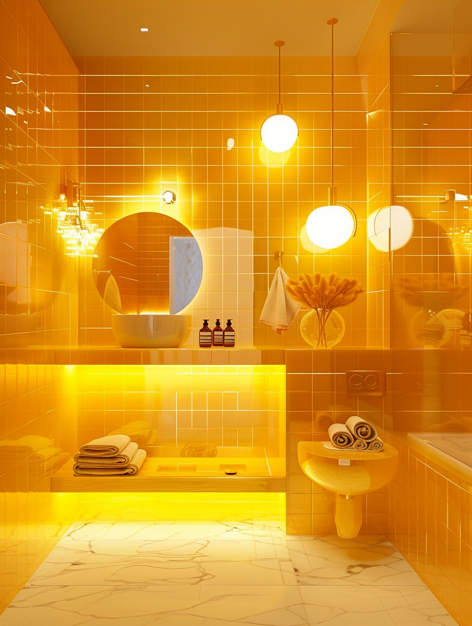 Sunny Yellow Tiles for a Bright Bathroom Floor