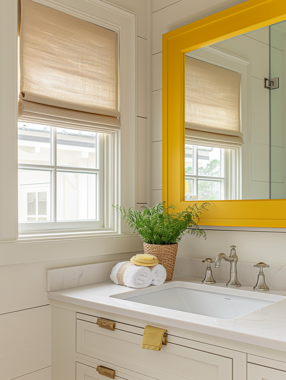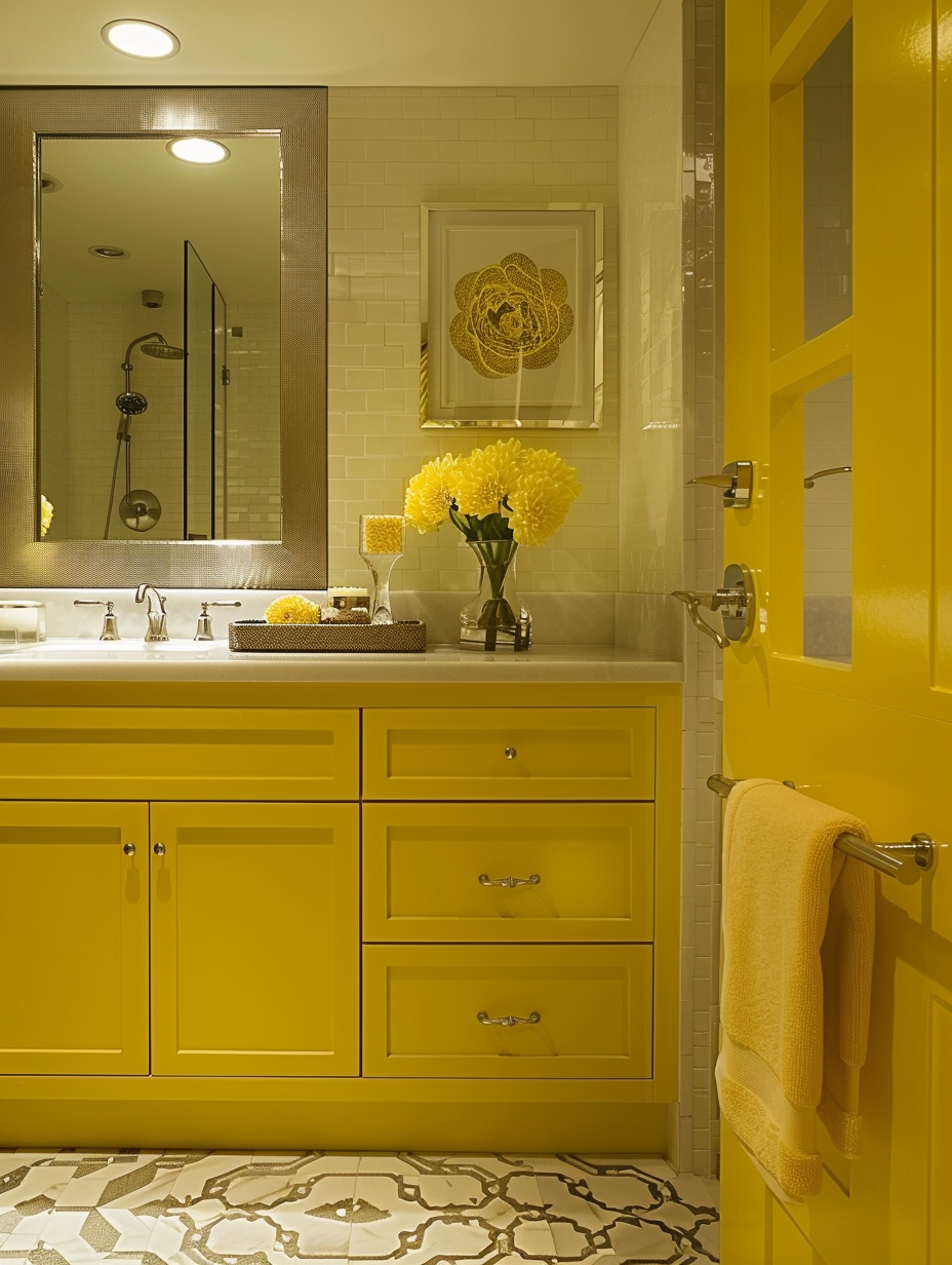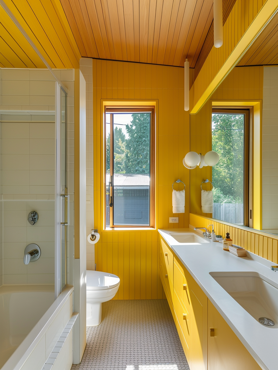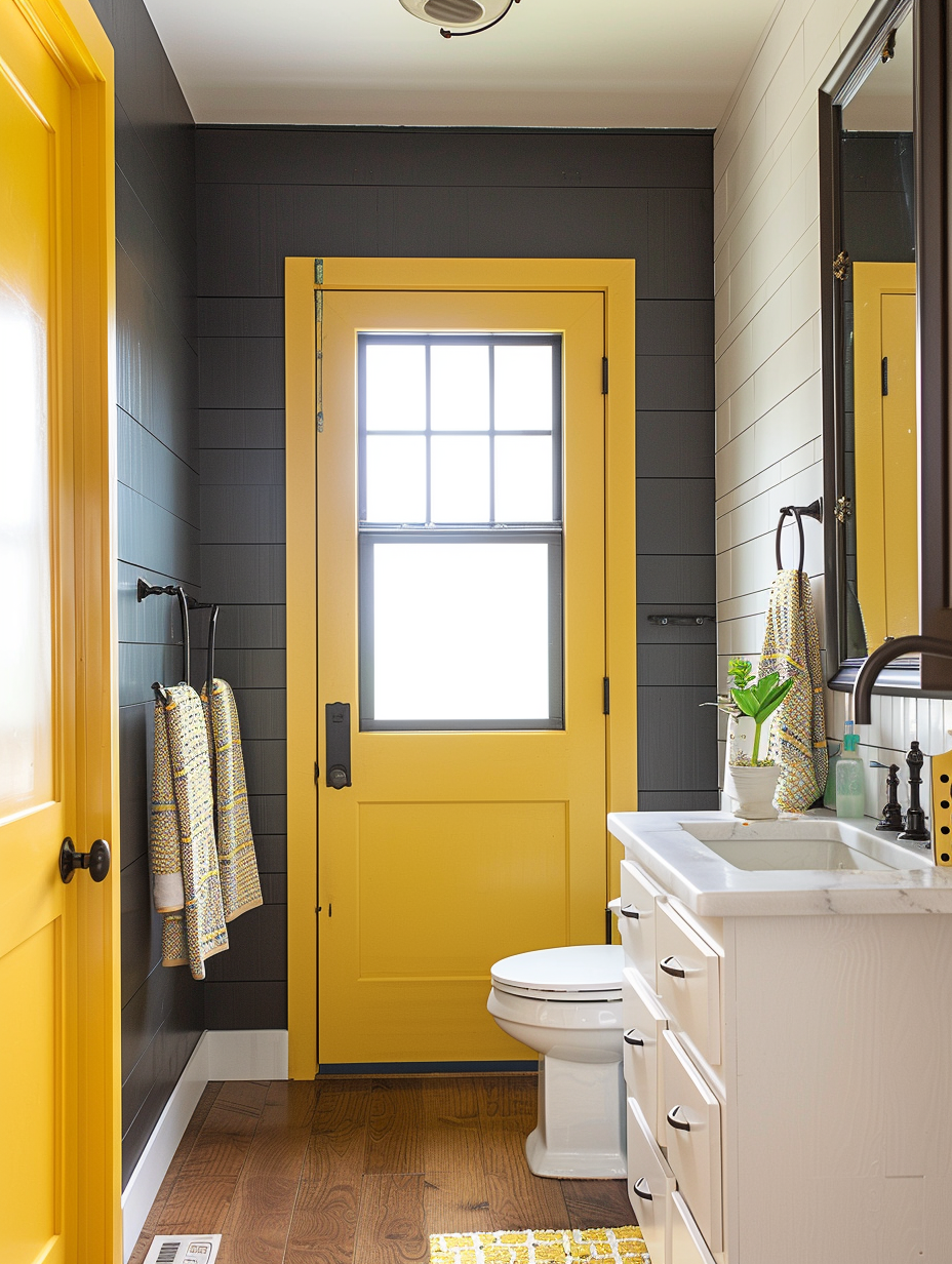 Yellow trim, when added to your bathroom, a subtle yet impactful design element, can be created. It can be made of baseboards, window frames, or crown molding. The yellow trim can bring out the room’s decor without overshadowing it, thus creating a new and modern atmosphere.