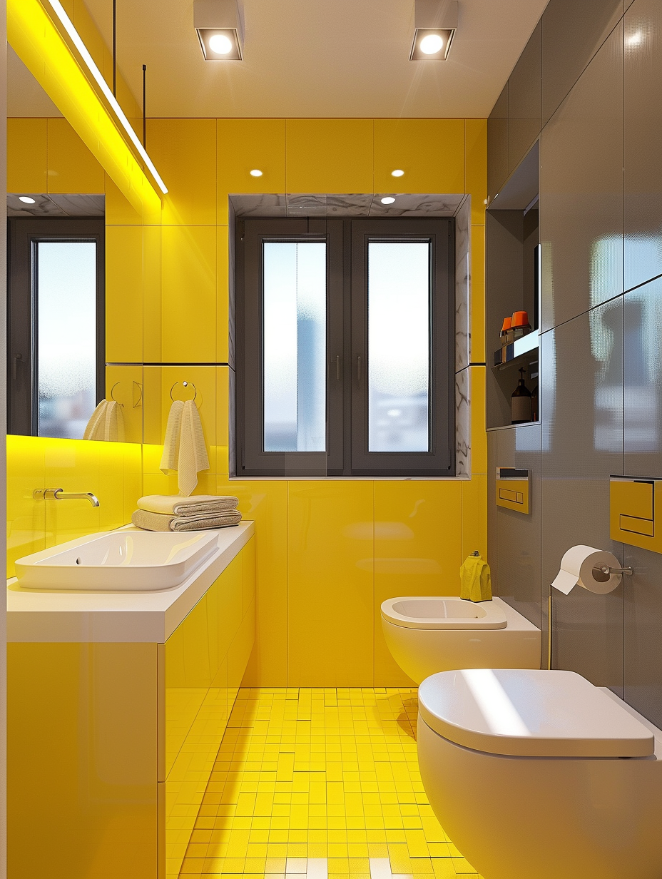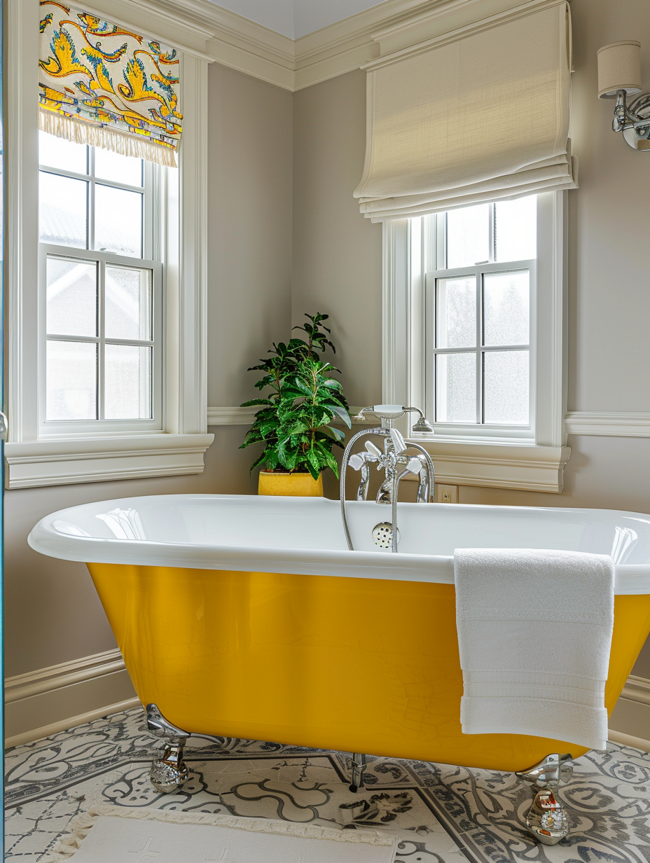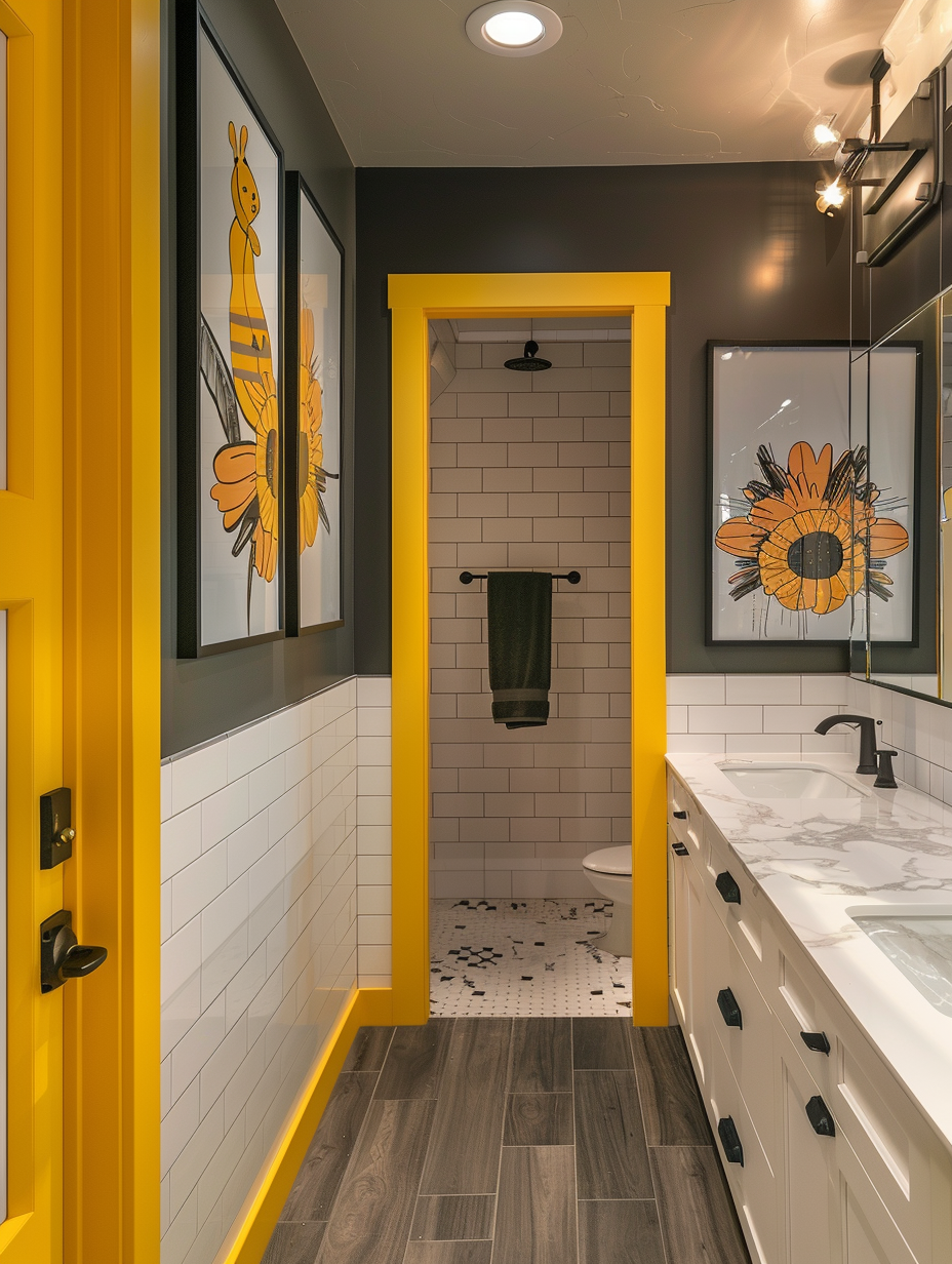 Yellow trim, when added to your bathroom, a subtle yet impactful design element, can be created. It can be made of baseboards, window frames, or crown molding. The yellow trim can bring out the room’s decor without overshadowing it, thus creating a new and modern atmosphere.