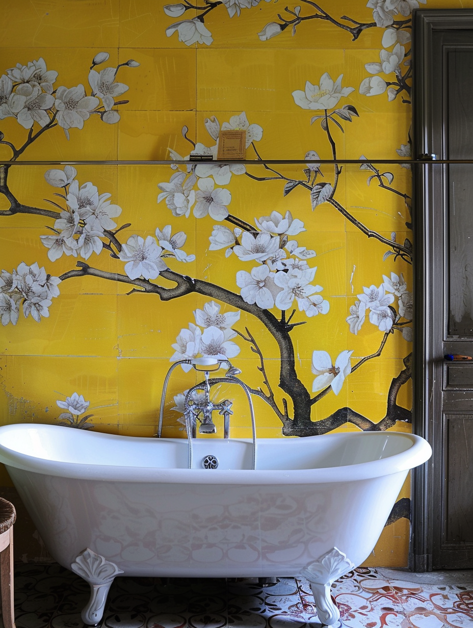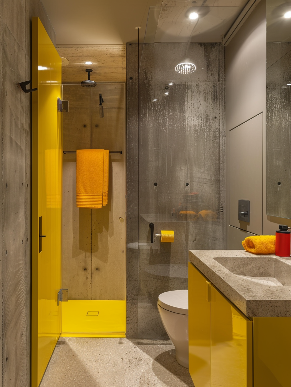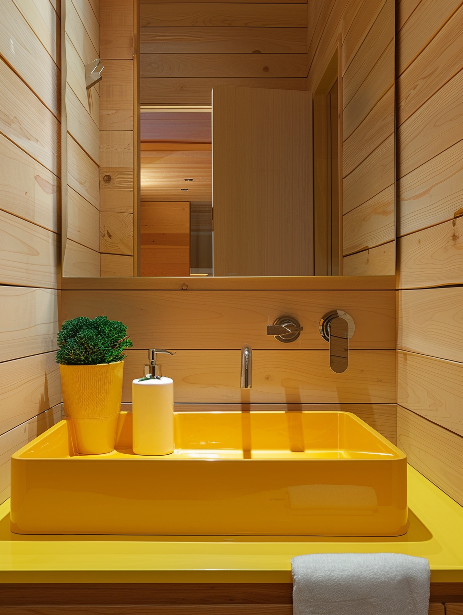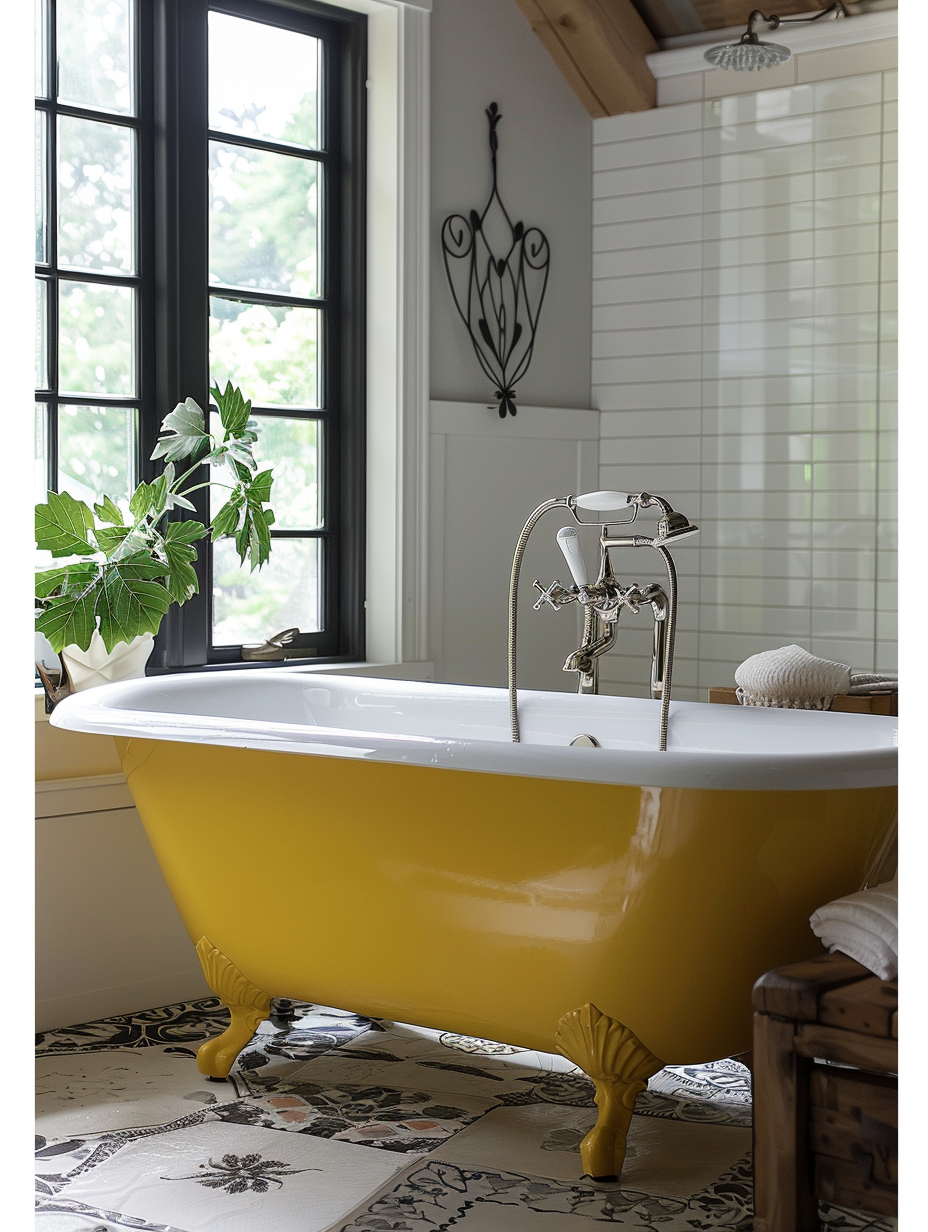 Yellow trim, when added to your bathroom, a subtle yet impactful design element, can be created. It can be made of baseboards, window frames, or crown molding. The yellow trim can bring out the room’s decor without overshadowing it, thus creating a new and modern atmosphere.