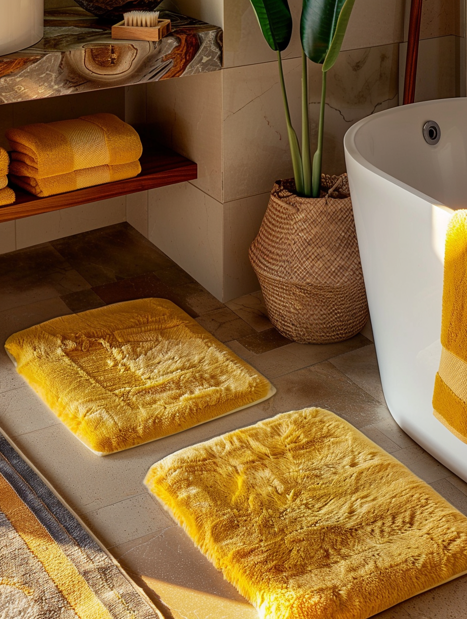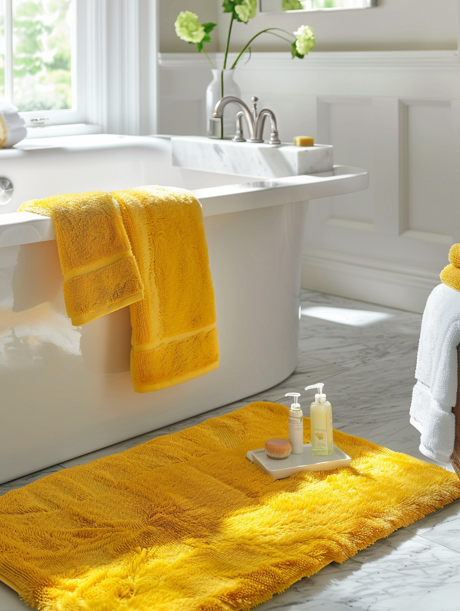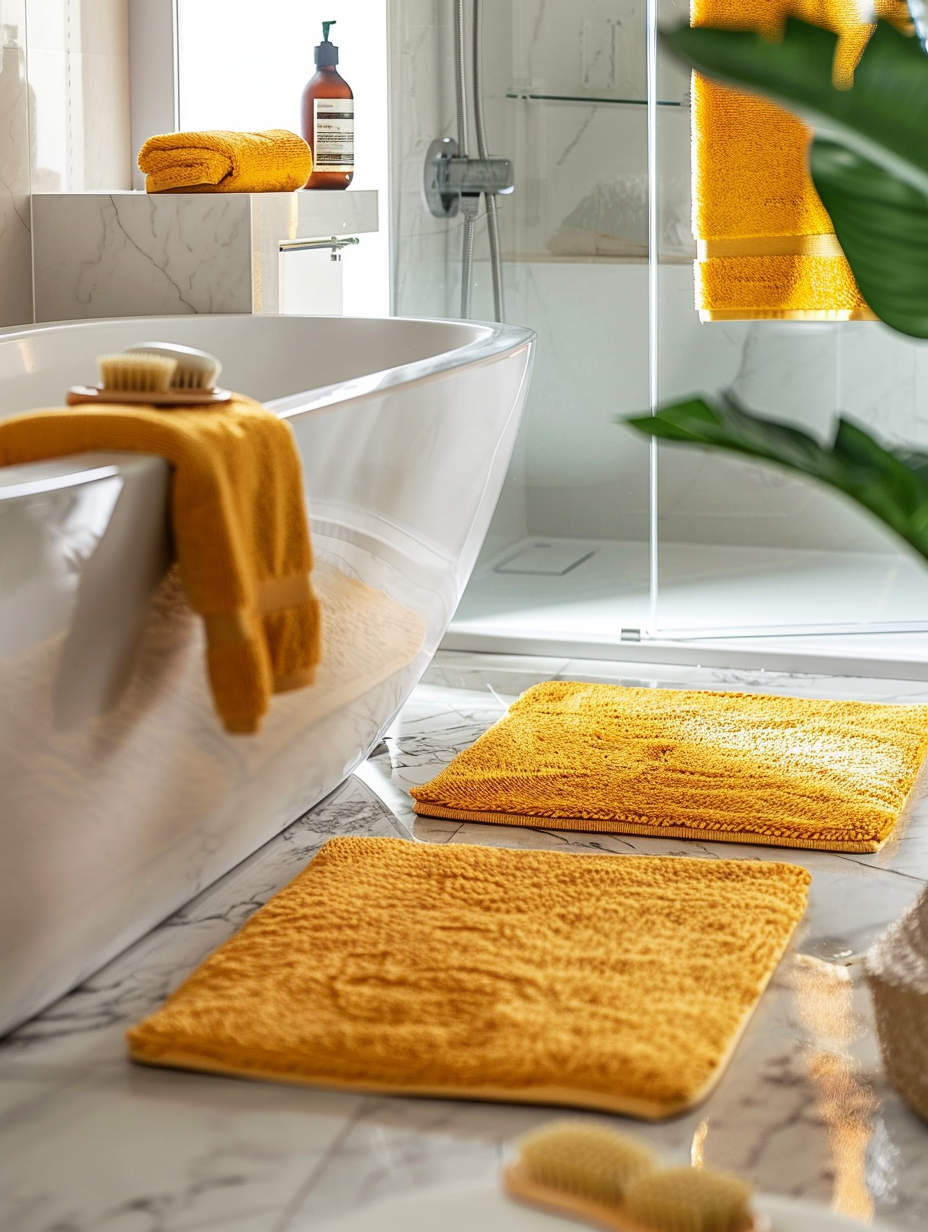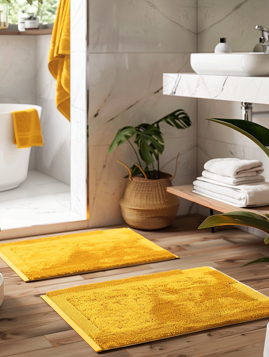 Try to add yellow bath mats in your bathroom to establish a comfortable and beautiful environment. Ensure that mats that go with your overall decor are selected and think about putting coordinating towels and accessories for a cohesive look. This understated extra can play a big role in the sense of spaciousness and lightness in the room in general.